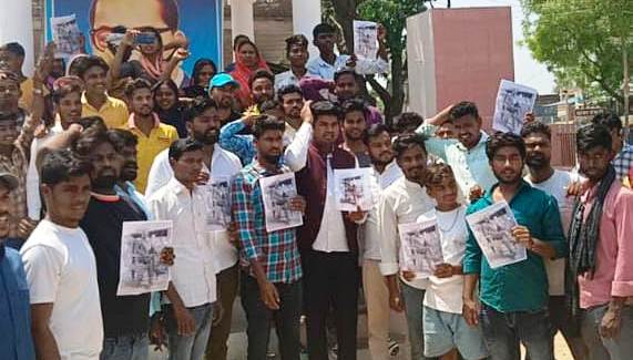अंबेडकर मूर्ति देख भड़के कार्यकर्ता
