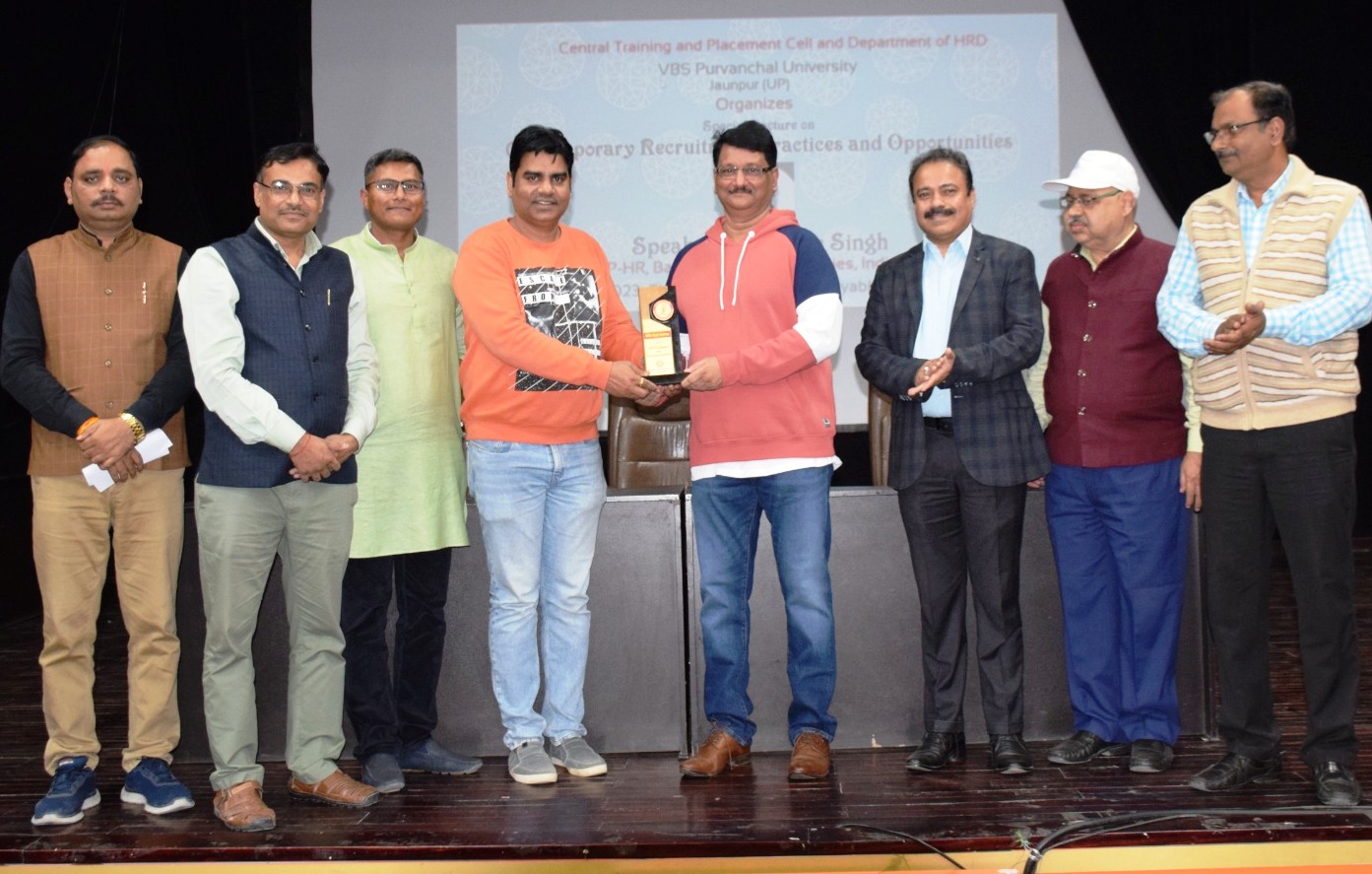 जौनपुर धारा, जौनपुर। वीर बहादुर सिंह पूर्वांचल विश्वविद्यालय के आर्यभट्ट सभागार में बुधवार को समसामयिक भर्ती प्रक्रिया और अवसर विषयक विशेष व्याख्यान का आयोजन मानव संसाधन विभाग एवं केंद्रीय प्रशिक्षण एवं प्लेसमेंट सेल के संयुक्त तत्वावधान में किया गया। व्याख्यान में बतौर मुख्य वक्ता मुंबई हाई कोर्ट के अधिवक्ता एवं बायर कंपनी समूह भारत के पूर्व वाइस प्रेसिडेंट मानव संसाधन अजय सिंह ने कहा कि भावनात्मक बुद्धिमत्ता जिनकी अधिक होती है। वह हर स्थिति में अपना बेहतर प्रदर्शन करते है। जीवन में और कार्य क्षेत्र में नित नई चुनौतियां सामने आती है। अधिक भावनात्मक बुद्धिमत्ता के लोग इनका सही तरीके से सामना करते है। उन्होंने कहा कि विद्यार्थी पढाई के दौरान से ही उद्योगों द्वारा निकलने वाली भर्तियों पर ध्यान दे और उनके अनुरूप अपने को तैयार करते रहे। छात्रों को कारपोरेट जीवन मे सफल होने के लिए स्वयं के विकास, रिज्यूम निर्माण और सोशल मीडिया प्रोफाइल को सकारात्मवâ रखने पर जोर दिया। उन्होंने कहा कि कंपनी नियुक्ति के पूर्व सोशल मीडिया प्रोफाइल को भी चेक कर रहीं है। इसपर नकारात्मक पोस्ट आपके लिए ठीक नहीं है। उन्होंने कहा कि पूर्वांचल के युवाओं में बहुत प्रतिभा है और आज देश के हर सेक्टर में अपना लोहा मनवा रहे है। कार्यक्रम में प्रतिभाग करने वाले विद्यार्थियों ने वक्ता से रोजगार सम्बंधित सवाल किये। इसी क्रम में अतिथि वक्ता भारतीय सेना कर्नल अभिषेक सिंह से कहा कि ईमानदारी और अच्छी भावना से काम करने वाले लोग किसी भी संस्थान के लिए संपत्ति होते है। उन्होंने सेना में प्रोफेशनल कोर्सेज के विद्यार्थियों के लिए उपलब्ध रोजगार के अवसरों के बारे में विस्तार से बताया। मानव संसाधन विभाग के अध्यक्ष प्रो.अविनाश पथर्डीकर ने अतिथियों का स्वागत एवं विषय प्रवर्तन किया। आईक्यूएसी के समन्वयक ने अतिथियों को पुष्प गुच्छ प्रदान किया। इस अवसर पर डॉ.मनोज मिश्र, डॉ.प्रमोद यादव, डॉ.आशुतोष सिंह, डॉ.प्रमोद कुमार, डॉ.रसिकेश, डॉ.दिग्विजय सिंह राठौर, डॉ.अमित वत्स, पंकज सिंह, अनुपम समेत विभिन्न संकायों के विद्यार्थी उपस्थित रहे।