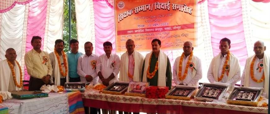 जौनपुर धारा, बख्शा। विकास खंड के कंपोजिट विद्यालय छंगापुर न्याय पंचायत लेदुका में शनिवार को अवकाश प्राप्त शिक्षकों का सम्मान समारोह का आयोजन वरिष्ठ शिक्षक संकुल सतीश चन्द्र पाण्डेय के नेतृत्व में किया गया। जिसमें मुख्य अतिथि सरोज सिंह अध्यक्ष प्राथमिक शिक्षक संघ बक्शा और विशिष्ट अतिथि शैलेंद्र सिंह रहे। कार्यक्रम का शुभारंभ सरस्वती की प्रतिमा पर माल्यार्पण एवं दीप प्रज्ज्वलन के साथ किया गया। कंपोजिट विद्यालय छंगापुर की बच्चियों द्वारा सरस्वती वंदना और स्वागत गान प्रस्तुत किया गया। अवकाश प्राप्त शिक्षक हरमेंद्र प्रताप सिंह, छोटे लाल दूबे, हौसिला प्रसाद पाण्डेय, रामकृपाल, श्यामलाल मौर्य एवं स्वर्गीय लालबहादुर विश्वकर्मा की जगह उनके पुत्र राकेश विश्वकर्मा को माल्यार्पण, अंगवस्त्रम एवं स्मृति चिन्ह न्याय पंचायत लेदुका के शिक्षकों द्वारा देकर उन्हें सम्मानित किया गया। इस अवसर पर एआरपी विष्णु शंकर सिंह, लाल साहब यादव, राजेश प्रजापति वरिष्ठ शिक्षक संकुल राजनाथ सिंह, मुनीश मिश्रा, मनोज उपाध्याय, विजय यादव, रामनयन यादव एवं शिक्षक अतुल पाण्डेय, सुशील उपाध्याय, विजय श्रीवास्तव, धर्मवीर सिंह, संजीव यादव, विजय यादव, अश्वनी, हरेंद्र,सौरभ, अनुराग, उमाशंकर द्विवेदी, शमसुल हक, उर्वशी देवी, बिंदु देवी, संगीता, शिप्रा ग्राम प्रधान राजेश सिंह, चन्द्र प्रकाश सिंह, वीरेंद्र यादव आदि उपस्थित रहे।