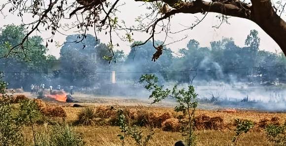 आग लगने से चालीस बोझ गेहूं जलकर राख