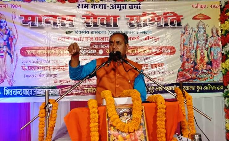 जौनपुर धारा, जौनपुर। ह्रदय में अगर भगवान का स्थान हो जाये तो हार्ट अटैक जीवन भर नहीं हो सकता है। उक्त बातें पराऊगंज बाजार स्थित मानस सेवा समिति द्वारा आयोजित आठ दिवसीय श्रीराम कथा के प्रथम दिवस शनिवार को मानस मर्मज्ञ पंडित प्रकाशचंद्र पांडेय विद्यार्थी ने कही। उन्होंने कीर्तन एवं सुमिरन तथा सुन्दर को रेखांकित करते हुए कहा कि भगवान का रूप जलाशय की तरह है। मनुष्य को अपनी आंखे मछली की तरह रखना चाहिए ताकि भगवान के जलाशय में मछली की तरह निवास कर सके। सुंदरकांड की उपायदेयता का बोध कराते हुए बताया कि नारी सशक्तिकरण भारतीय संस्कृति में सदियों से चली आ रही है जिस के नाते प्राण से भी ज्यादा प्यारा होने पर भी माता कैकेयी ने राम को वन भेजा तथा बाली एवं लंकापति रावण ने नारी का हरण करने पर श्रीराम ने मर्यादा का पालन करते हुए उनका बध किया। ब्रिटिश गवर्नमेंट के दांत खट्टे कर तलवार की नोक को चुराते हुए झांसी की रानी शौर्य गति को प्राप्त हुई। ऐसी होती हैं हमारी भारतीय नारी। कथा के आयोजक राधेश्याम गुप्ता ने मंचस्थ व्यास पीठ का माल्यार्पण कर अभिनंदन किया। उक्त अवसर पर पंडित श्रीभूषण मिश्र, पंडित राम सुमेर मिश्र, भैयालाल शुक्ल, पूर्व ब्लॉक प्रमुख वंश गोपाल सिंह, हरीनाथ तिवारी, नितिन सिंह, भाजपा नेता कृष्ण प्रताप दुबे, सुभाष सिंह, पवन कुमार चौबे, सतीश गुप्ता समेत सैकड़ों की संख्या में श्रद्धालुजनों ने कथा का रसपान किया। आरती वंदन सभी श्रद्धालु जनों ने किया।
