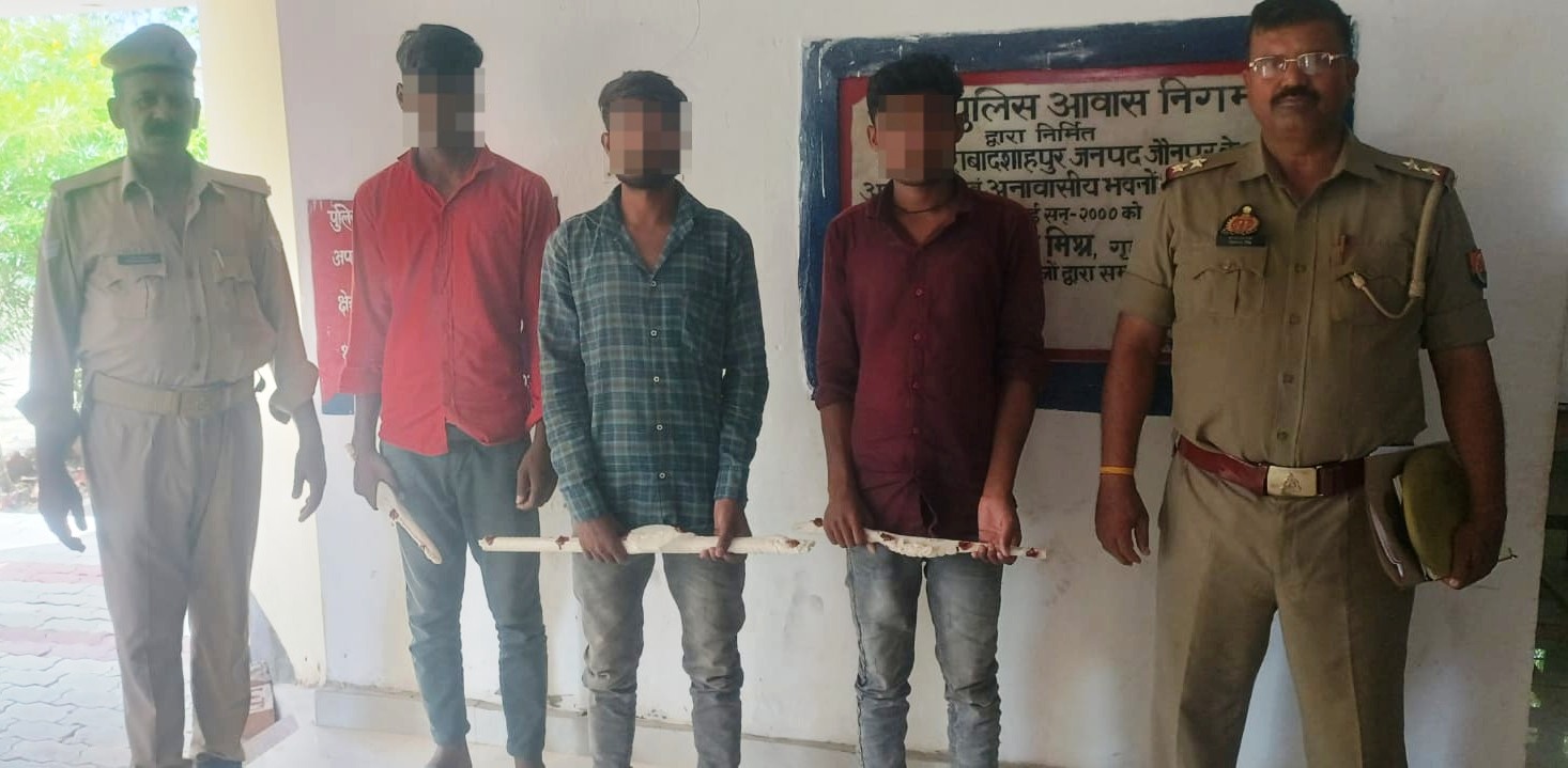 जौनपुर धारा, जौनपुर। पुलिस अधीक्षक डा. अजय पाल शर्मा द्वारा अपराध एवं अपराधियों के विरुद्ध गिरफ्तारी हेतु चलाये गये अभियान के तहत अपर पुलिस अधीक्षक नगर व क्षेत्राधिकारी केराकत के पर्यवेक्षण एवं दिशा निर्देशन में थाना गौराबादशाहपुर पुलिस टीम द्वारा गोपनीय सूत्र द्वारा प्राप्त सूचना पर ग्राम धर्मसारी ईंट-भठ्ठे के पास से आपराधिक घटना करने की योजना बना रहे तीन अभियुक्तो को गुरूवार को गिरफ्तार कर लिया। उनके कब्जे से एक लोहे का धारदार नुकीला सम्बल, एक लोहे का धारदार रम्भा, एक लोहे का धारदार राड, चार लोहे का पंच बरामद किया गया। बरामदगी व गिरफ्तारी के आधार पर थाना गौराबादशाहपुर में मुकदमा पंजीकृत कर अभियुक्तगण को विधिक कार्यवाही करते हुए न्यायालय भेजा गया।