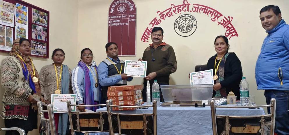 जौनपुर धारा, जलालपुर। स्थानीय ब्लाक अंतर्गत स्थित सामुदायिक स्वास्थ्य केंद्र रेहटी में आरबीएसके टीम को फील्ड वर्क कायाकल्प व कोरोना काल के कार्य को लेकर सम्मानित किया गया। मंगलवार को सामुदायिक स्वास्थ्य केंद्र रेहटी के चिकित्सा अधीक्षक डॉक्टर आलोक कुमार सिंह के द्वारा आरबीएसके टीम के डॉक्टर रंजना राय, डॉक्टर हेमंत यादव, डॉक्टर अजित कुमार, डॉक्टर नंदनी, आप्टम दिनेश सिंह, रीना भाष्कर, नेहा राय, रीमा देवी को प्रशस्ती पत्र, गोल्ड मेडल व पुरस्कार वितरित किया गया। अधीक्षक आलोक सिंह ने बताया कि राष्ट्रीय बाल स्वास्थ्य कार्यक्रम अन्तर्गत ब्लाक के सभी विद्यालय व आंगनवाड़ी केंद के बच्चों का स्वास्थ्य जांच करने की कार्य करने वाली डेडिकेटेड आरबीएसके टीम को सम्मानित किया गया है जो पिछले कोविड व कायाकल्प में बढ़ चढ़कर सहयोग किया था। इस अवसर पर डाक्टर क्षितिज पाठक, बीपीएम आशुतोष सिंह, राकेश चौबे, मयंक मिश्रा, दिनेश सिंह, अवनीश, सपन, सुनील वर्मा, प्रदीप कुमार उपस्थित रहे।