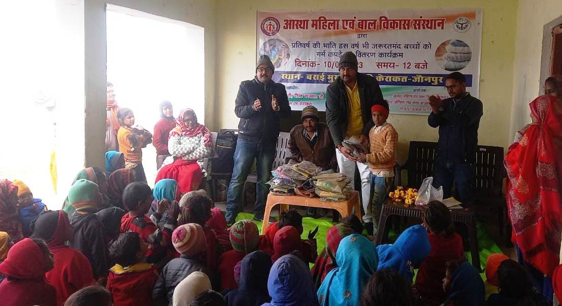 आस्था महिला बाल संस्थान ने बच्चो में वितरण किये गर्म कपड़े