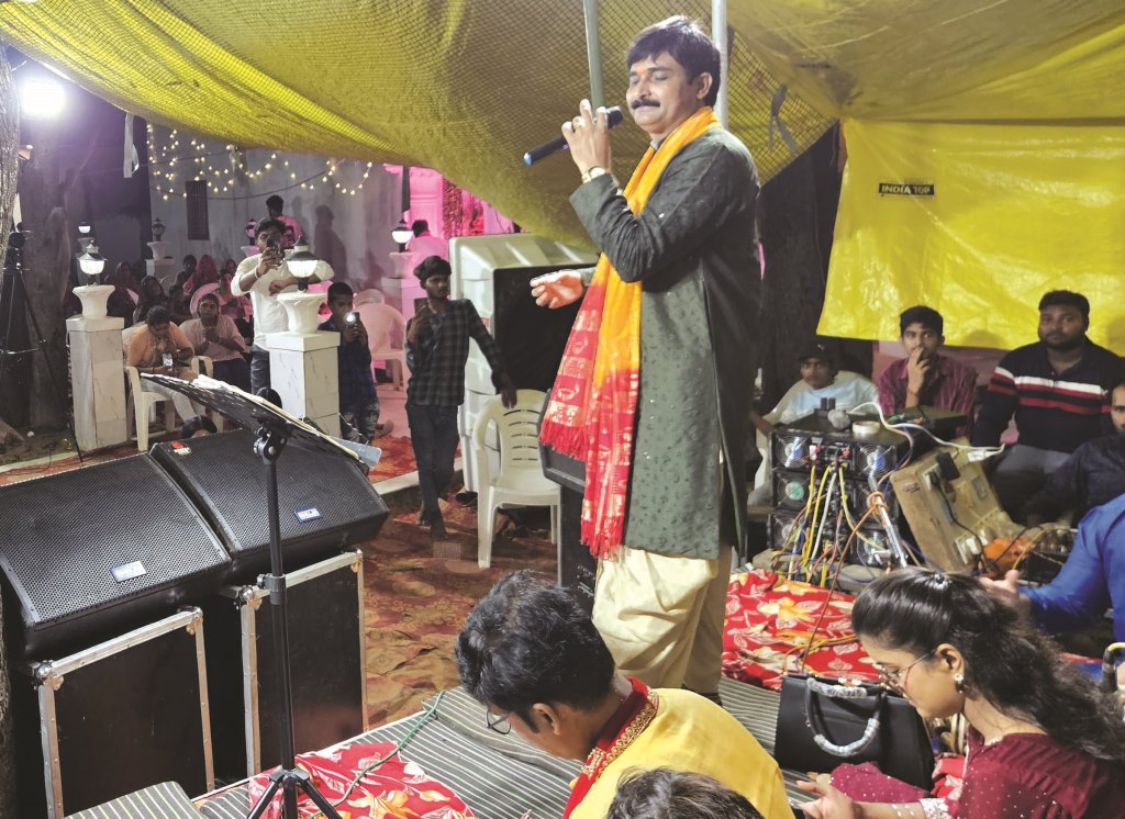 महराजगंज। इच्छा पूर्ति शिव मंदिर साईं धाम डेल्हुपुर में सावन के पहले सोमवार को भजन संध्या व महाप्रसाद का वितरण किया गया। भजन संध्या में पहुँचे अंतर्राष्ट्रीय जौनपुर की माटी के सुप्रसिद्ध गायक रवींद्र सिंह ज्योति, प्रिया सोनी, विवेक रागी, गीतकार मृत्युंजय सिंह सिप्पी व राणा सिंह सहित वादकों का स्वागत आयोजक टीम द्वारा माल्यार्पण कर स्वागत किया गया। गायक रवींद्र सिंह ज्योति ने शिव के मंदिर में हाजिरी लगाते हुए बसा-बसा भोले बाबा हमार नगरी से शुरू किया। चिरई रहती जे हम मयरिया, बैरी मिले है मैया लेकिन घाती यार न मिले, मयरिया कवने करनवा सहित शिव भजन देवी पचरा की प्रस्तुति ने मन मोह लिया। गीतकार मृतुन्जय सिंह सिप्पी द्वारा लिखी भजन आ जईहा इच्छा पूर्ति महादेव धामÓ गीत की शूटिंग भी मंदिर परिसर में हुई। सुर संग्राम की फेम गायिका प्रिया सोनी ने सत्यम शिवम सुंदरम, ओम नमो शिवाय सहित सोहर,पचरा गायक अमित सागर ने गणेश वंदना बम बम बोल रहा है। काशी सहित गायक विवेक रागी ने हनुमान भजन सोहर आदि गानों पर महिलाओं को झूमने पर मजबूर कर दिया। कार्यक्रम समापन के बाद आयोजक टीम के चन्दन तिवारी, अमरपाल तिवारी, धीरज मिश्रा, पप्पू यादव, रमाकान्त तिवारी, कृष्ण कुमार निगम, ओमप्रकाश सेठ, धीरज जायसवाल, रामपाल, नन्दलाल मोदनवाल, नितिन यादव ने सभी कलाकारों व आए हुए श्रोताओं का आभार प्रकट किया। पुजारी दयाशंकर तिवारी व शिवशंकर तिवारी द्वारा विधिविधान से पूजन अर्चन कर हजारों की संख्या में पहुंचे श्रद्धालुओं ने महाप्रसाद ग्रहण किया।