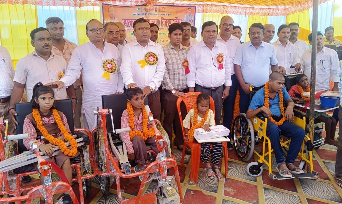 उपकरण पाकर दिव्यांग बच्चों के चेहरे खिले