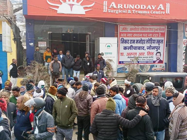 जौनपुर धारा, जौनपुर। नईगंज मोहल्ला स्थित अरुणोदय हास्पिटल में शुक्रवार की सुबह उपचार के दौरान एक युवक की मौत से नाराज परिजनों ने वहां जमकर हंगामा मचाया। पुलिस के पहुंचने पर मामला शांत हुआ। पुलिस का कहना है कि किसी ने भी किसी तरह की तहरीर नहीं दी है। बताया जाता है कि मड़ियाहूं के जमुआ गांव निवासी 36 वर्षीय पंकज मिश्रा का 6 दिन पूर्व उक्त हास्पिटल में आपरेशन हुआ था। शनिवार की सुबह अचानक उसकी हालत बिगड़ गई। डाक्टरों के काफी प्रयास के बाद भी उसे बचाया नहीं जा सका। मृत युवक के परिजन उपचार में लापरवाही बरतने का आरोप लगाते हुए हंगामा मचाने लगे। परिजनों का आरोप है कि पंकज की मौत के बाद डाक्टर सच्चाई छिपाते हुए उसके ठीक हो जाने की बात कहते रहे। विवाद बढ़ने पर हास्पिटल प्रशासन ने पुलिस को सूचना दी। सरायपोख्ता पुलिस चौकी प्रभारी अरविंद कुमार सिंह व पुरानी बाजार पुलिस चौकी प्रभारी आफताब आलम पुलिस जवानों के साथ वहां पहुंचे और समझा-बुझाकर मामले को शांत कराया। इसके पश्चात रोते-बिलखते परिजन शव को लेकर चले गए। मृत पंकज अपने माता-पिता का इकलौता पुत्र था। उसी पर परिवार की गृहस्थी चलाने की जिम्मेदारी थी। स्वजन की आंखों के आंसू थमने का नाम नहीं ले रहे हैं। इस संदर्भ में अस्पताल के संचालक डा. अरूण आर. सिंह से जानकारी चाही गयी तो उन्होंने कहाकि मरीज की स्थिति सामान्य थी। हम उसे डिस्चार्ज कर रहे थे। जैसे ही उसे घर ले जाने के लिए खड़ा कराया गया अचानक उसकी तबियत बिगड़ गयी और मौके पर ही उसने दम तोड़ दिया।