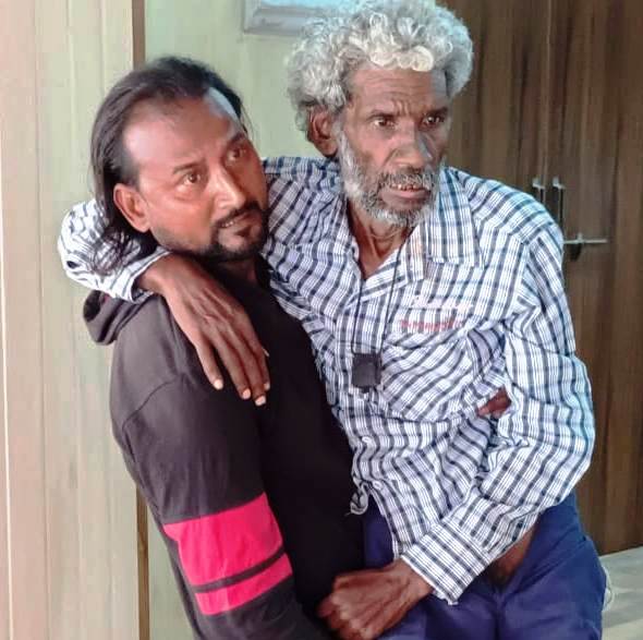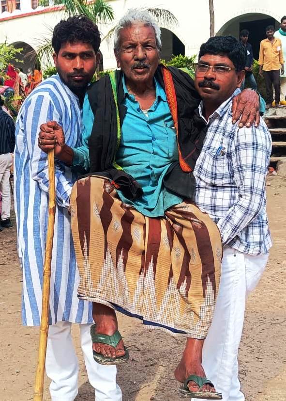 वृद्ध को गोदी में उठाकर मतदान केंद्र तक ले जाता युवक
