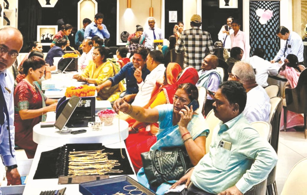 जौनपुर। 91.6गोल्ड पैलेस नखास व कीर्ति कुंज ज्वेलर्स चहारसू चौराहा स्थित शोरूम में दो दिवसीय ज्वेलरी प्रदर्शनी के दिन ग्राहकों खरीदारी की। सीएमडी नन्हेंलाल वर्मा ने बताया कि प्रदर्शनी में नए ग्राहक भी हमसे जुड़ रहें है। उन्होंने कहा कि ग्राहक को पूर्ण रूप से गुणवत्ता युक्त ज्वेलरी ही शोरूम में उपलब्ध कराई गई है। मैनेजिंग डायरेक्टर सनी वर्मा व प्रियम वर्मा ने बताया कि इस अवसर पर ग्राहकों को विशेष छूट प्रदान की जा रही है। जितना सोना खरीदे उतना चांदी मुफ्त, डायमंड की ज्वेलरी बनवाई पर 30′ का फ्लैट डिस्काउंट प्रदान किया जा रहा है। शोरूम में जर्मन गोल्ड टेस्टिंग मशीन द्वारा पुराने और नए सोने की ज्वेलरी की जांच करने के बाद ही ग्राहकों को दिया जाता है। दोनों ज्वेलरी शोरूम पर शत प्रतिशत एचयूआईडी हॉलमार्क ज्वेलरी का लेटेस्ट संग्रह उपलब्ध है। साथ ही वैवाहिक कलेक्शन स्पेशल डिजाइनों के साथ शोरूम पर उपलब्ध है। लाइटवेट लुक वाइज हैवी ज्वेलरी की भरपूर श्रृंखला दोनों शोरूम पर देखी जा सकती है। जो ग्राहकों को खूब लुभा रही है। इस अवसर पर विकास ओझा, डॉ.अभिषेक सिंह, डॉ.विकास, डॉ.राम मिलान यादव, विद्या देवी, डॉ.अशोक आदि ग्राहकों को अंग वस्त्रम प्रदान कर सम्मानित किया गया। अतिथियों का स्वागत स्टोर मैनेजर अमित तिवारी व बाल कुंवर पांडे ने किया।