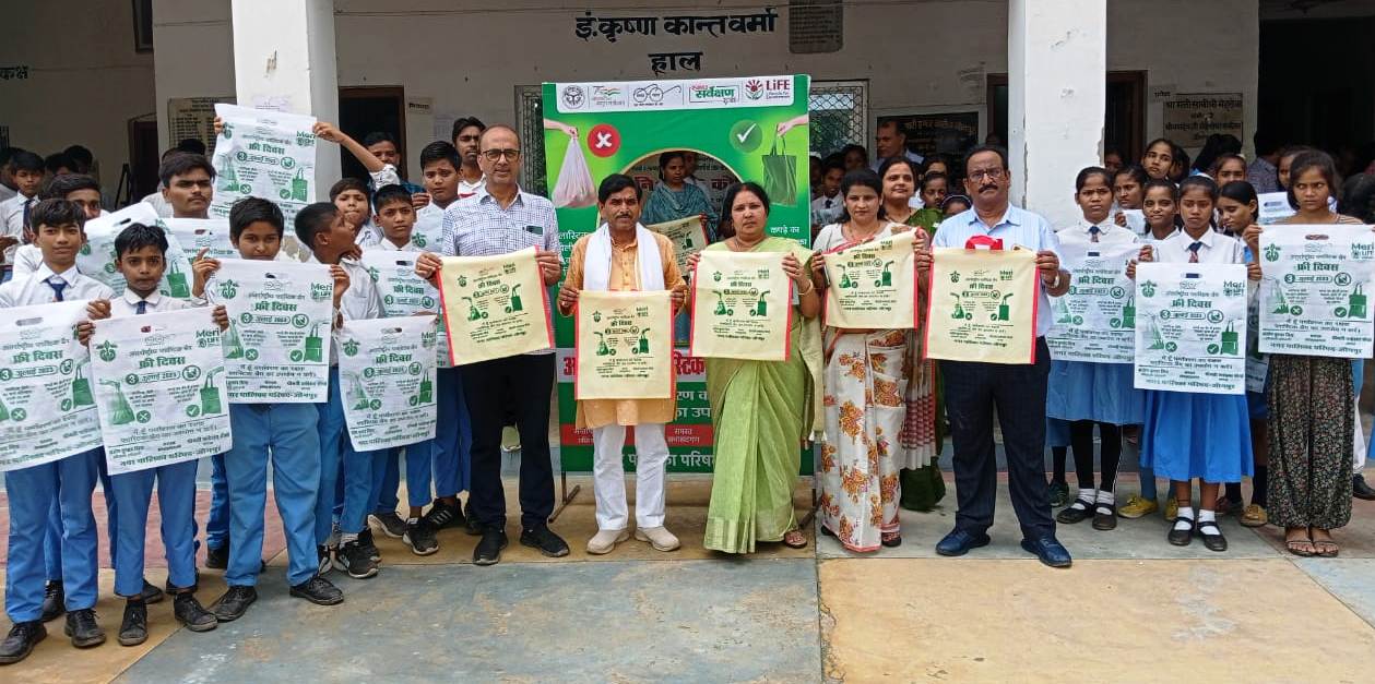 जौनपुर धारा, जौनपुर। नगर पालिका परिषद जौनपुर द्वारा आयोजित अन्तर्राष्ट्रीय प्लास्टिक बैग प्रâी दिवस के अवसर पर नगर के जनक कुमारी इण्टर कॉलेज के प्रांगण में जागरूकता कार्यक्रम आयोजित किया गया। कार्यक्रम का शुभारंभ मनोरमा मौर्य अध्यक्ष, संतोष कुमार मिश्रा अधिशासी अधिकारी, डॉ.रामसूरत मौर्या, सरला महेश्वरी अध्यक्ष महिला शाखा प्रâेंड्स ग्रुप, विपनेश श्रीवास्तव वाइस प्रिंसिपल जनक कुमारी इंटर कॉलेज ने संयुक्त रूप से दीप जलाकर किया। तत्पश्चात अतिथियों का स्वागत विद्यालय के शिक्षकों ने बुके एवं कपड़े के थैला देकर किया। नगर पालिका परिषद ने उपस्थित लोगों को कपड़े का थैला वितरण कर शपथ दिलाया। इस अवसर पर अधिशासी अधिकारी संतोष मिश्रा ने कहा हमें अगर पर्यावरण को बचाना है और साफ सुथरा रखना है तो पॉलिथीन को हमे अपने जीवन से हमेशा के लिए दूर करना होगा और कपड़े के थैले का सदैव इस्तेमाल करें। नगर पालिका ने एक विशेष अभियान चलाकर पॉलिथीन विक्रेताओं पर कार्रवाई किया है। अतिथियों का स्वागत वाइस प्रिंसिपल विपनेश श्रीवास्तव व कार्यक्रम का संचालन सलमान शेख ने किया। इस अवसर पर शिखा सिंह, सुहासिनी मिश्रा, शारिक अली, वंशिका सिंह, तस्नीम फातमा, सौरभ मौर्य, अलग-अलग जनपद के एनजीओ विद्यालय के बच्चे सहित अध्यापक उपस्थित रहे।