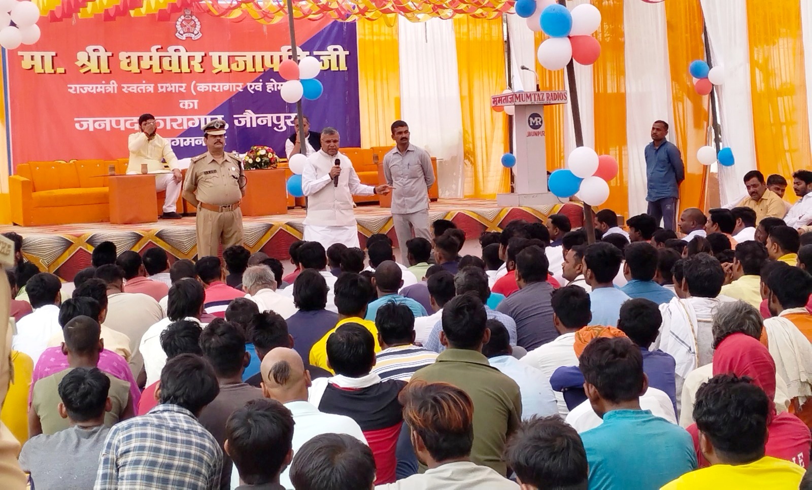 जौनपुर धारा, जौनपुर। प्रदेश के कारागार एवं होमगार्ड राज्यमंत्री (स्वतंत्र प्रभार) धर्मवीर प्रजापति का गुरूवार को पूर्वाह्न जिला कारागार में आगमन हुआ। उनके द्वारा बन्दियों से सीधा संवाद किया गया। बन्दियों में सुधार हेतु गीता के माध्यम से उदाहरणों के द्वारा समझाया गया तथा ज्ञानवर्धक बातें बतायी गयी कि व्यक्ति अपने कर्मों के अनुसार दु:ख व सुख प्राप्त करता है। मंत्री के द्वारा बन्दियों के घर से आने वाले मुलाकाती परिजन के सम्बन्ध में पूछा गया तथा कारागार में लम्बे समय से सजा काट रहे बन्दियों के सम्बन्ध में जानकारी प्राप्त की गयी। बन्दियों से गायत्री मंत्र, महा मृत्युंजय मंत्र के साथ अन्य धर्मों से सम्बन्धित मंत्रो का जाप करने को कहा गया एवं जाप से होने वाले लाभ के बारे में बताया गया। साथ ही बन्दियों को व्यक्ति के द्वारा किये गये कर्मों के भेग के सम्बन्ध में भीष्म पितामाह एवं माण्डव्य ऋषि का एक उदाहरण देकर समझाया गया कि मनुष्य द्वारा किये गये कर्मों का अच्छा या बुरा फल धरती पर ही मिलता है। कारागार में महिलाओं के साथ रह रहे बच्चों के बारे में बताया गया कि इन बच्चो का क्या दोष है? या इनके द्वारा क्या पाप किया गया है कि वह जेल में निरूद्ध है। इस सम्बन्ध में मंत्री द्वारा बताया गया कि यह पूर्व संस्कार की देन है। जिस कारण यह बच्चे जेल में है इसी प्रकार कारागार में निरूद्ध बन्दियों को भी पूर्व संस्कार की देन बताया। उनके द्वारा बन्दियों से अच्छे इंसान बनने के लिए व अच्छा जीवन जीने के लिए कुछ मंत्रो को जाप करने के लिए कहा गया और साथ ही यह भी कहा गया कि आप जब भी कारागार से छूटकर बाहर जायें एक अच्छे इंसान की तरह दूसरों से व्यवहार करें और अपना जीवन अच्छे इंसान की तरह बितायें। मंत्री द्वारा बन्दियों को कौशल विकास के अन्तर्गत प्रशिक्षण दिये जाने हेतु एवं बन्दियों को प्रशिक्षित किये जाने हेतु विशेष ध्यान देने की बात कही गयी ताकि कारागार से बाहर जाने के उपरान्त वें स्वावलम्बी बन सकें। जिससे अपना एवं अपने परिवार का भरण-पोषण कर सके।