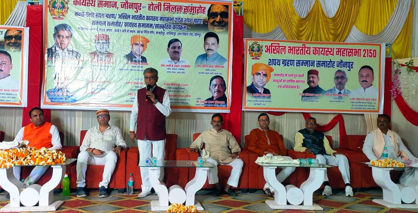 जौनपुर धारा, जौनपुर। आजादी के बाद देश के संसद में एवं विधानसभा में कायस्थ समाज के सैकड़ों जनप्रतिनिधि थे आज नाम मात्र ही बचे हैं। कायस्थ समाज के लोगो ने देश को राष्ट्रपति प्रधानमंत्री तक के पद पर सुशोभित किया और राष्ट्रहित के लिए कार्य किया है। उक्त विचार उत्तर प्रदेश सरकार के वन पर्यावरण जलवायु परिवर्तन मंत्री डॉ.अरुण सक्सेना ने वाजिदपुर में एक होटल में संगत पंगत के शपथ ग्रहण समारोह व कायस्थ महासभा के शपथ ग्रहण समारोह व समागम में बतौर मुख्य अतिथि संबोधित करते हुए कहा। उन्होने कहा कि आज कायस्थ समाज को राजनीति के क्षेत्र में आगे-आने की जरूरत है तभी कायस्थ समाज का उत्थान होगा। उक्त अवसर पर कायस्थ समाज के सभी संगठन के लोगों के मिलकर विशाल होली मिलन समारोह किया। विशिष्ट अतिथि वाराणसी कैंट के विधायक सौरव श्रीवास्तव ने कहा कि स्वामी विवेकानंद सुभाष चंद्र बोस डॉ.राजेंद्र प्रसाद लाल बहादुर शास्त्री जयप्रकाश नारायण लाल आदि कई हस्तियों ने देश निर्माण में अपना महत्वपूर्ण योगदान दिया है। कायस्थ समाज के योगदान को कभी भुलाया नहीं जा सकता है। महासभा के राष्ट्रीय अध्यक्ष मनीष श्रीवास्तव ने कहा कि आज पूरे देश में कायस्थ महासभा का विस्तार तेजी से हो रहा है। जिसमें लोग जुड़ रहे हैं। यह संगठन राष्ट्रवाद के लिए समर्पित है और योगी मोदी के नीतियों को आगे बढ़ाने के लिए दृढ़ संकल्प है। इसी क्रम में विशिष्ट अतिथि कायस्थ कल्याण समिति के जिला अध्यक्ष दयाल सरन श्रीवास्तव ने अपने विचारों को व्यक्त किया। उक्त अवसर पर कायस्थ समाज के क्षेत्र में काम कर रहे विभिन्न विभूतियों को कायस्थ रत्न से सम्मानित किया गया। जिसमें चिकित्सा के क्षेत्र में डॉ.निलेश कुमार श्रीवास्तव, डॉ.विवेक कुमार श्रीवास्तव, डॉ.शुभम श्रीवास्तव एवं पत्रकारिता के क्षेत्र में रविंद्र कुमार श्रीवास्तव, शशि राज सिन्हा, योगेश श्रीवास्तव, राजेश श्रीवास्तव, विश्व प्रकाश श्रीवास्तव, संजय अस्थाना, अमरदीप श्रीवास्तव, आशीष श्रीवास्तव, राजन श्रीवास्तव को कायस्थ रत्न से सम्मानित किया गया। इसी कड़ी में शिक्षा के क्षेत्र में सिंधुजा श्रीवास्तव, स्वरुचि श्रीवास्तव तो कला के क्षेत्र में विजय श्रीवास्तव गायक को सम्मानित किया गया। कार्यक्रम की अध्यक्षता संगत पंगत के जिला अध्यक्ष पंकज श्रीवास्तव हैप्पी व संचालन राजेश श्रीवास्तव बच्चा भैया एडवोकेट ने किया। आभार कायस्थ महासभा के जिलाध्यक्ष मनोज श्रीवास्तव एडवोकेट ने किया। संगत पंगत के पदाधिकारियों को डॉ.अरुण सक्सेना ने पद एवं गोपनीयता की शपथ दिलाया। उक्त अवसर पर राष्ट्रीय कार्यकारी अध्यक्ष संजय श्रीवास्तव, प्रदीप श्रीवास्तव, डॉ.अशोक अस्थाना, डॉ.रमाकांत श्रीवास्तव पूर्व प्
