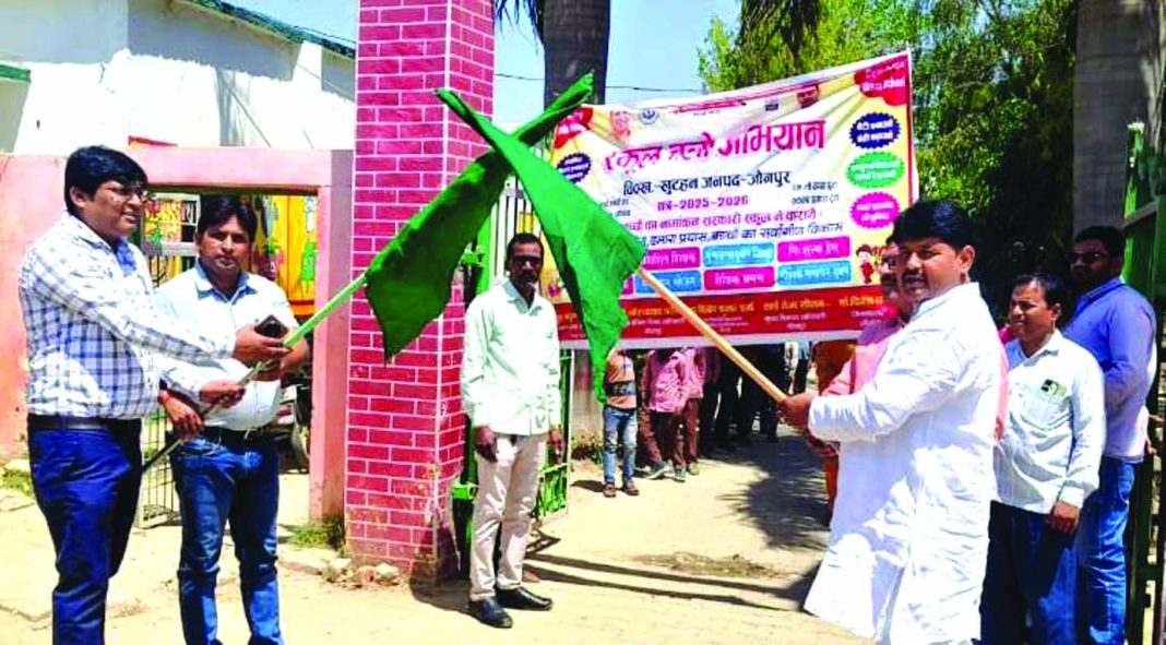 जौनपुर धारा,खुटहन। स्कूल चलो रैली के अंतर्गत सत्र 2025-26 में नए नामांकन के लिए प्राथमिक विद्यालय खुटहन प्रथम तथा कस्तूरबा गांधी आवासीय बालिका विद्यालय खुटहन की संयुक्त रैली निकाली गई। रैली को ब्लॉक प्रमुख खुटहन बृजेश यादव, खंड शिक्षा अधिकारी विपुल कुमार उपाध्याय ने संयुक्त रूप से हरी झंडी दिखाकर रवाना किया। सैकड़ो बालक बालिकाओं के साथ अध्यापक रैली को खुटहन बाजार से होते बीआरसी पर समाप्त किया। ब्लॉक प्रमुख ने प्राथमिक विद्यालय खुटहन प्रथम तथा कस्तूरबा गांधी आवासीय बालिका विद्यालय खुटहन के छात्र-छात्राओं को पुस्तक प्रदान किया। किताब पाकर बच्चों के मन खिल गए। रैली में प्रधान अजीत कुमार यादव, वेंकटेश्वर विश्वकर्मा, प्रधानाध्यापक सुशील कुमार यादव, रामचंद्र यादव, आशीष कुमार यादव, श्यामलकांत यादव, रविंद्र यादव, सत्य प्रकाश यादव, रश्मि तिवारी, स्मृति यादव, आकांक्षा बरनवाल, जयंती देवी, गीता पाल वार्डन अंजू खरवार, रुक्मणी यादव, सुशीला, नेहा यादव सहित सैकड़ो छात्र-छात्राएं प्रतिभाग किया। प्राथमिक विद्यालय सधनपुर में प्रधान शशि कला यादव तथा प्रधानाध्यापक राजकुमार यादव ने सभी बच्चों को तिलक लगाकर नए सत्र में स्वागत किया तथा सभी बच्चों को पुस्तक वितरित किया गया तो विद्यालय का माहौल उत्सव की तरह खिल गया।