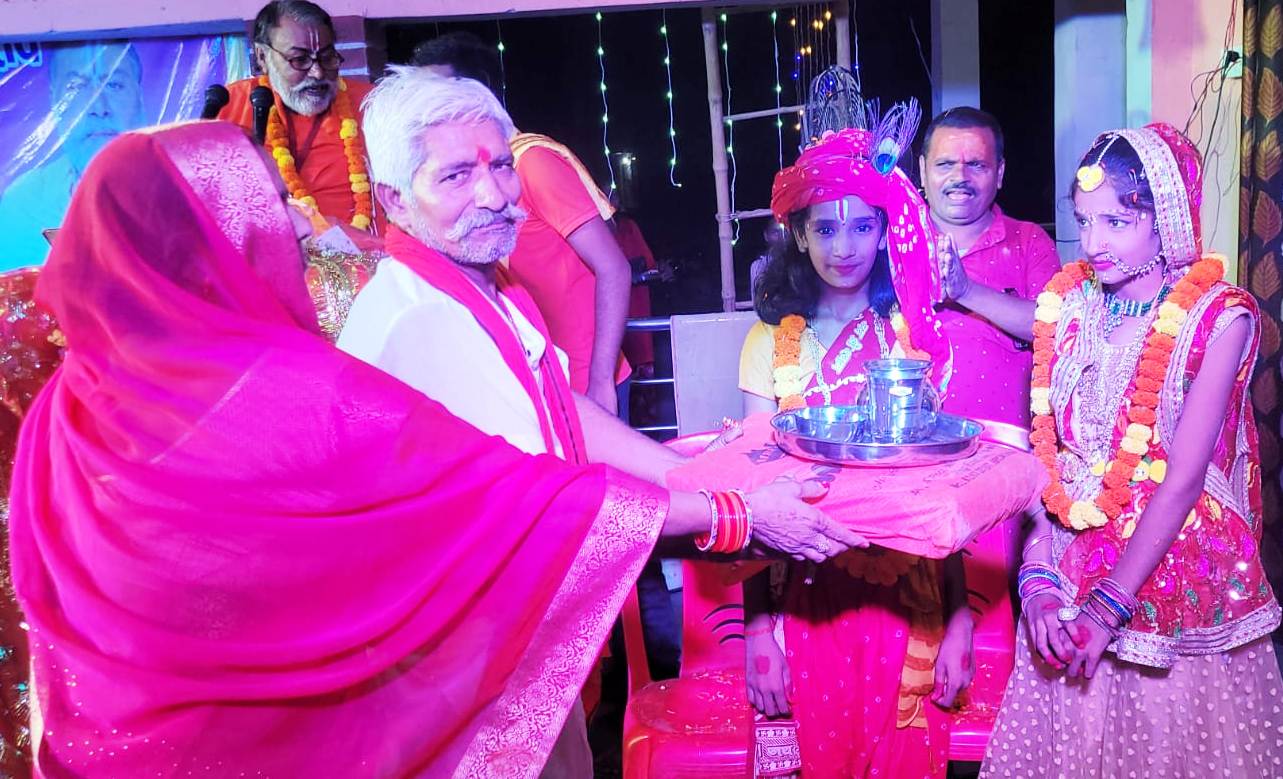 जौनपुर धारा, महराजगंज। अमारी स्थित अमरेश्वर महादेव मंदिर परिसर में सातवें दिन कृष्ण रुक्मणी विवाह के साथ श्रीमद् भागवत कथा का विश्राम हुआ और हवन व भंडारे का आयोजन हुआ। श्रीकृष्ण रुक्मणी विवाह झांकी देखकर श्रद्धालु भाव विभोर हो गए। इस दौरान मुख्य यजमान जिलेदार सिंह व श्रद्धालुओं ने पांव पूजन तथा कन्यादान किया। अयोध्या से पधारे कथा व्यास कृपालु दास महाराज ने सुदामा चरित्र सहित श्री मद्भागवत की महत्ता बताई। श्रोताओं को जीवन के उद्धार के लिए कलयुग में हरि कीर्तन करने को कहा व्यसन और फैशन को छोड़कर सत्संग को अपनाने का संदेश दिया। भगवान श्रीकृष्ण रूकमणि के विवाह की झांकी आकर्षण का केंद्र रही। कथा स्थल पर रूकमणि विवाह के आयोजन ने श्रद्धालुओं को झूमने पर मजबूर कर दिया। श्रीकृष्ण रूकमणि की वरमाला पर फूलों की बरसात हुई। कथा विश्राम के बाद यज्ञ व भंडारे का आयोजन किया गया। कथा का संचालन अमर पाल सिंह व आयोजक समस्त ग्राम वासी रहे। मौके पर भूपनारायण सिंह, करन सिंह, त्रिभुवन, रामजीत, हौशिला प्रसाद, पूर्व प्रधान समर बहादुर सिंह, आरपी सिंह, डॉक्टर चंद्रशेखर, महन्त सियाराम उपाध्याय, राम कृपाल उपाध्याय, ग्राम प्रधान अनिल सहित सैकड़ो श्रद्धालु मौजूद रहे।