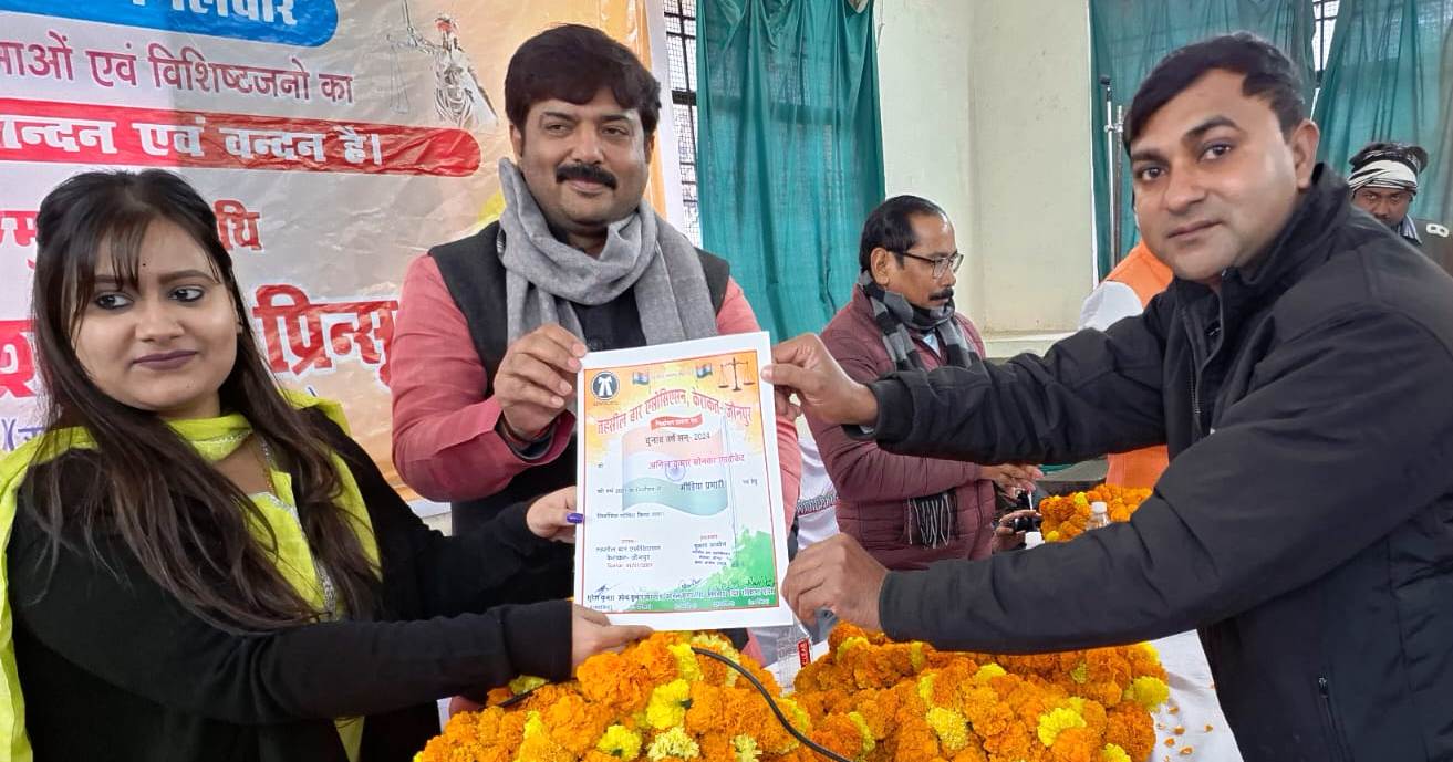 जौनपुर धारा, केराकत। स्थानीय तहसील के ब्ाार एसोसिएशन की नव निर्वाचित कमेटी का मंगलवार को शपथ ग्रहण समारोह आयोजित किया गया। जिसमें बार के वरिष्ठ अधिवक्ता एवं पूर्व अध्यक्ष महेन्द्र शंकर पाण्डेय ने नव निर्वाचित अध्यक्ष सुभाष चंद्र सिंह और महामंत्री मुकेश शुक्ल सहित अन्य पदाधिकारियों को शपथ दिलाया। समारोह के मुख्य अतिथि एमएलसी बृजेश सिंह‘प्रिंसू’ और विशिष्ट अतिथि केराकत की एसडीएम नेहा मिश्रा ने संयुक्त रूप से नव निर्वाचित पदाधिकारियों को प्रमाण पत्र प्रदान किया और शुभकामनायें दी। समारोह को सम्बोधित करते हुए मुख्य अतिथि ने कहा कि अधिवक्ता से बड़ा कोई समाजसेवी नहीं होता। आगे उन्होंने कहा कि वे अधिवक्ताओं के हित के लिए सदैव तत्पर रहेंगे। विशिष्ट अतिथि एसडीएम नेहा मिश्रा ने नव निर्वाचित कमेटी से बेंच का सहयोग करने की अपील की। इस मौके पर दोनों पदाधिकारियों ने बार हित के लिए काम करने का आश्वासन दिया। सभा को तहसील बार के पूर्व अध्यक्ष नमः नाथ शर्मा, शारदा प्रसाद बादल, सुरेश राम ने भी सम्बोधित किया। इस अवसर पर तहसीलदार मूसाराम, बीजेपी के जिला उपाध्यक्ष बृजेश सिंह, अजय सिंह, चंद्रजीत पहलवान, जिला पंचायत सदस्य प्रतिनिधि पप्पू सरोज, डॉ.नरसिंह बहादुर, डॉ.शारदा प्रसाद सिंह आदि रहे। समारोह की अध्यक्षता महेन्द्र शंकर पाण्डेय और संचालन राजेश पाण्डेय ने किया।