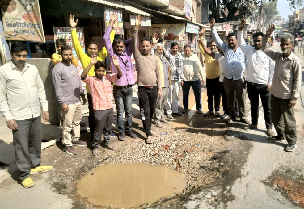 गड्ढयुक्त सड़क को लेकर किया प्रदर्शन
