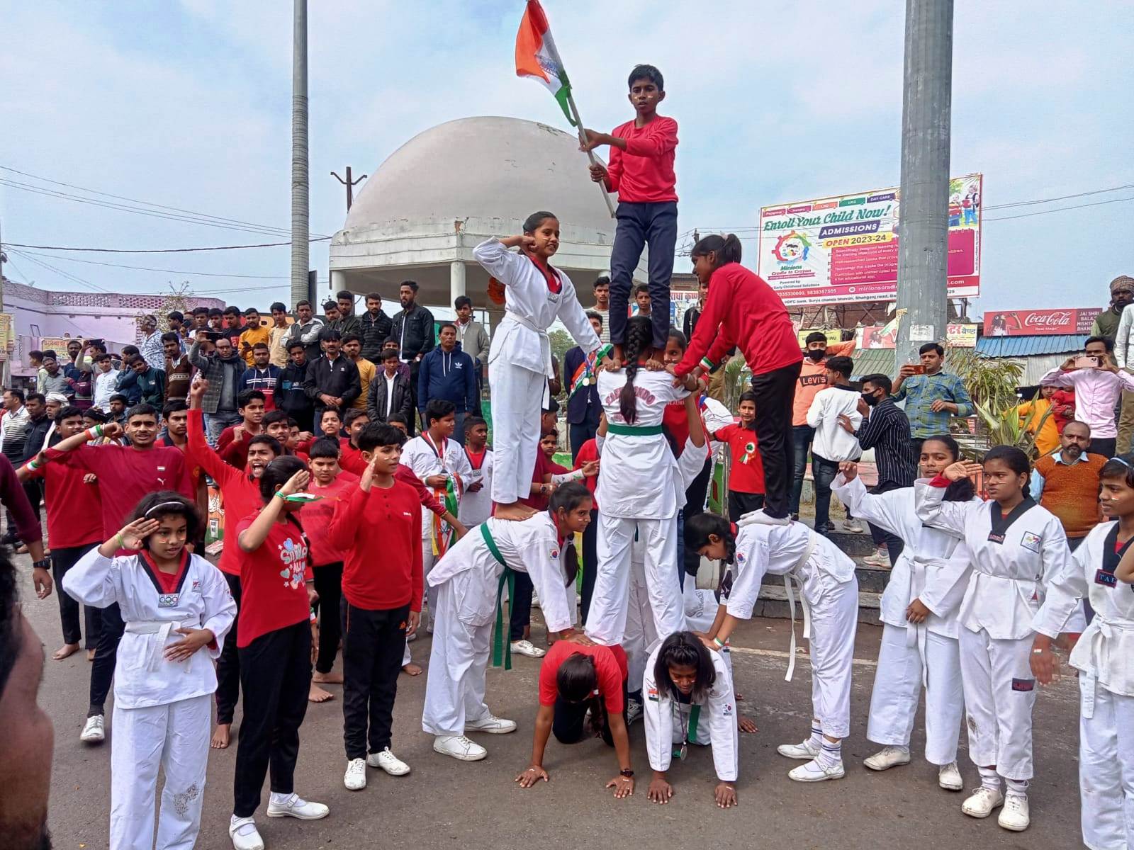 गणतंत्र दिवस पर बच्चों ने निकाली प्रभातफेरी, प्रस्तुत किया ताइक्वांडो कार्यक्रम