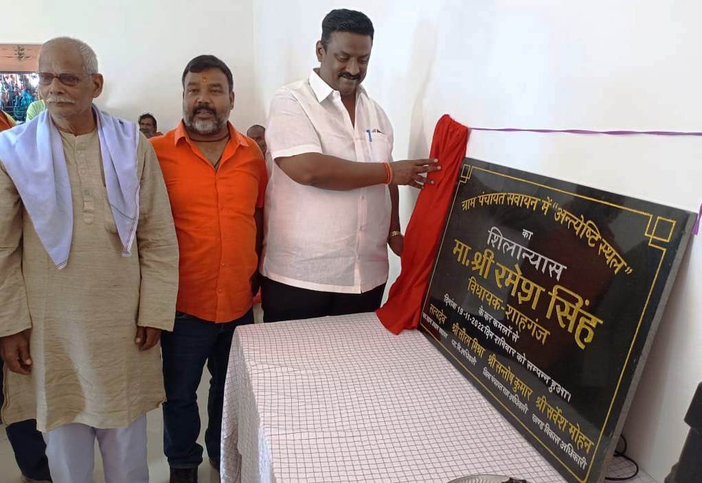 जौनपुर धारा, सुइथाकला। स्थानीय विकास खण्ड के सवायन गाँव में शनिवार शाम क्षेत्रीय विधायक रमेश सिंह द्वारा अन्त्येष्टि स्थल का शिलान्यास किया गया। तत्पश्चात ग्रामीणों ने गाँव में विकास की गंगा बहाने वाले जुझारू किस्म के अपने विधायक का माल्यार्पण कर जोरदार स्वागत किया।