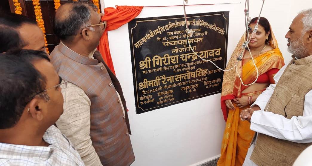 जौनपुर धारा, जौनपुर। स्थानीय क्षेत्र के गांव में आधुनिक पंचायत भवन का लोकार्पण राज्यमंत्री गिरीशचंद्र यादव ने किया। उन्होंने कहा कि आधुनिक सचिवालय से जनता को काफी सरकार द्वारा दी गई सारी सुविधाएं मिलेगी और ग्राम पंचायत स्तर के अधिकारी जनप्रतिनिधि इसी सचिवालय पर मौजूद रहकर जनता का काम करेंगे। उन्होंने परिसर में पौधारोपण भी किया। स्वतंत्र प्रभार राज्यमंत्री गिरीशचंद यादव ने सरायख्वाजा में ग्राम प्रधान रैना संतोष सिंह द्वारा बनाए गए आधुनिक पंचायत भवन का लोकार्पण किए। राज्यमंत्री ने कहा कि गांव में सचिवालय आधुनिक पंचायत भवन बन रहे हैं। जहां अधिकारी ग्राम पंचायत भवन मे बैठकर जनता का काम करें। उन्हें मुख्यालय से लेकर लखनऊ-दिल्ली तक न भटकना पड़े। आज पीएम मोदी व मुख्यमंत्री योगी की सरकार महात्मा गांधी के सपनों को साकार कर रही है। आधुनिक सचिवालय या पंचायत भवन का निर्माण कर रही है। जिसमें सप्ताह में क्रमवार ग्राम स्तर के अधिकारी व जनप्रतिनित बैठकर जनता का काम निबटाएंगे। यहीं से सरकारी योजनाओं का क्रियान्वयन होगा। गांव मे जो मूलभूत सुविधाएं हैं जो सरकार विकास कर रही है। कहा कि सिद्धिकपुर से जमुआही मार्ग के लिए 18करोड़ का बजट की मंजूरी मिल गई है। पूर्व विधायक सुरेंद्र सिंह ने सरकार के द्वारा कराए गए विकास कार्यों की उपलब्धियां गिनाई। उन्होंने कहा कि आने वाले समय में भाजपा सरका हर तरह की सेवाएं गांव के घर-घर तक उपलब्ध कराएगी। उन्होंने सरायख्वाजा के ग्राम प्रधान रैना संतोष सिंह के द्वारा कराए गए विकास कार्य की जमकर सराहना की, कहा कि अब गांव शहर जैसे हो रहे हैं। अध्यक्षता कर रही ग्राम प्रधान रैना संतोष सिंह ने कहा कि गांव को हम सभी सुविधाओं से परिपूर्ण कर प्रदेश का नंबर एक गांव बनाएंगे। भाजपा के पूर्व मंडल अध्यक्ष अजय सिंह’ खर्चू’ ने सभी अतिथियों का स्वागत किया। कार्यक्रम का संचालन खेतासराय मंडल अध्यक्ष धर्मेंद्र मिश्र ने किया। इस अवसर पर नगर पालिका अध्यक्ष के प्रतिनिधि डॉ.रामसूरत मौर्य, ब्लॉक प्रमुख करंजाकला के प्रतिनिधि सुनील यादव मम्मन, राजकेशर पाल, सूबेदार सिंह, वीडीओ सोधी जितेंद्र सिंह, कंचन सिंह, दुर्गेश सिंह, हीरा सिंह ठाकुर, प्रशांत सिंह दीपक, संतोष सिंह, रामानंद यादव, राजाराम जायसवाल, अजीत यादव, राजकेशर मिश्रा, वीरेंद्र सिंह, देवेन्द्र सिंह मौजूद रहे।