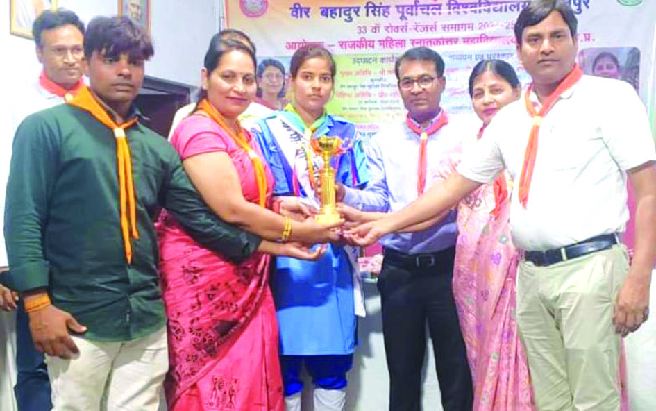 जौनपुर धारा,बदलापुर। पूर्वांचल विश्वविद्यालय से संबंधित रोवर्स-रेंजर्स का विश्वविद्यालयीय समागम-2025 कार्यक्रम राजकीय महिला पी.जी.कालेज, गाजीपुर में गुरूवार को संपन्न हुआ। जौनपुर के सल्तनत बहादुर महाविद्यालय बदलापुर ने अपनी दोनों टीमों के साथ प्रतिभाग किया। पूरी प्रतियोगिता में इस महाविद्यालय ने तीसरा स्थान प्राप्त किया। क्विज प्रतियोगिता में सल्तनत बहादुर महाविद्यालय प्रथम स्थान पर रहा।रोवर्स-रेंजर्स प्रभारी डॉ.कर्मचन्द यादव एवं डॉ.रेखा मिश्रा के नेतृत्व में छात्र-छात्राओं ने शानदार प्रदर्शन किया। महाविद्यालय प्रबन्ध समिति के अध्यक्ष राकेश कुमार सिंह, प्रबंधक श्याम सिंह एवं प्राचार्य प्रो.सुनील प्रताप सिंह, पूर्व प्राचार्य प्रो.ब्रजेन्द्र सिंह, प्रो.धीरेन्द्र पटेल, कार्यालय अधीक्षक सुनील सिंह, राजुल सिंह, राघवेन्द्र सिंह,डॉ.उमेश सिंह, डॉ.पवन सिंह, डॉ.तिलक सिंह यादव, डॉ.कुलदीप श्रीवास्तव सहित महाविद्यालय परिवार ने दोनों टीमों का उत्साहवर्धन करते हुए बधाई व शुभकामनाएं प्रेषित किया। विश्वविद्यालयीय समागम-2025 में पी.जी.कालेज गाजीपुर प्रथम एवं राजकीय महाविद्यालय गाजीपुर दूसरे स्थान पर विजेता रहे।