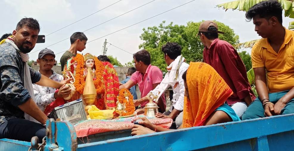 • ग्रामीणों ने डीजे और बाजे के साथ प्रतिमा को गांव के चारों तरफ घुमाया