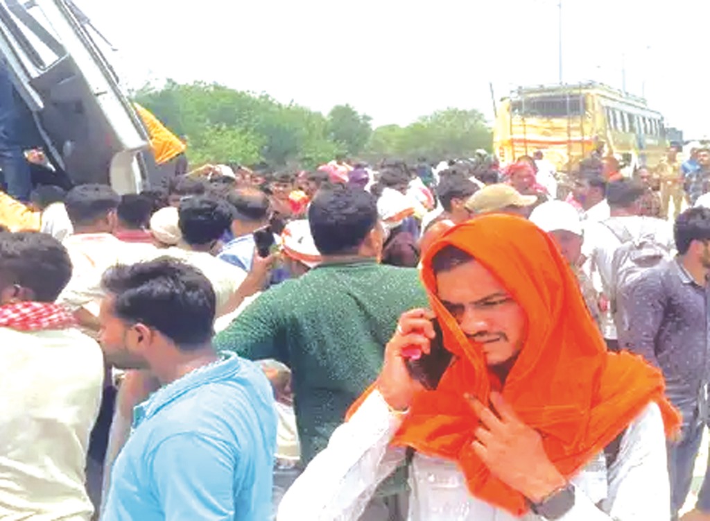 ड्राइवर का पैर केबिन में फंसा, छह घायल