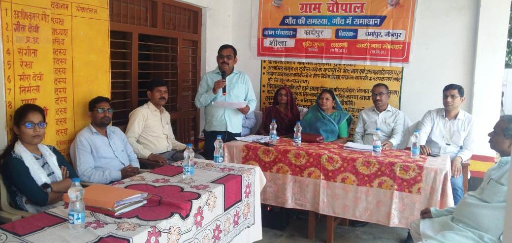जौनपुर धारा, गौराबादशाहपुर। सभी ग्राम प्रधान और सचिव अपने-अपने ग्राम पंचायत में एंटी लार्वा दवा का छिड़काव और साफ सफाई करवाएं, ग्राम पंचायतों में सफाई व्यवस्था गड़बड़ पाए जाने पर सफाई कर्मियों के विरुद्ध विभागीय कार्रवाई की जाएगी। उक्त बातें शुक्रवार को विकासखंड धमार्पुर के ग्राम पंचायत कादीपुर में आयोजित ग्राम चौपाल मे खण्ड विकास अधिकारी काशीनाथ सोनकर ने कही। एडीओ पंचायत लाल जी राम ने कहा कि एक अप्रैल से तीस अप्रैल तक गावों में संचारी रोग अभियान और सत्रह अप्रैल से तीस अप्रैल तक दस्तक अभियान चलाया जाएगा उसमें सभी ग्रामवासी और फील्ड कर्मचारी सहयोग करें। एडीओ आईएसबी संजय श्रीवास्तव ने शासन द्वारा संचालित विभिन्न योजनाओं स्वच्छ सर्वेक्षण ग्रामीण, मिशन अंत्योदय सर्वे, प्रधानमंत्री, मुख्यमंत्री आवास योजना, आयुष्मान योजना, एकल पाइप पेयजल योजना, स्वच्छ भारत मिशन, पेंशन योजना, पंचायत कार्यालय से मिलने वाली सुविधाओं के विषय में लोगों को जानकारी दी। ग्राम पंचायत कादीपुर में राष्ट्रपति द्वारा पुरस्कृत किसान गुलाब चंद्र मौर्य ने उपस्थित ग्रामीणों को कम खाद का प्रयोग से ज्यादा उत्पादन करने के तरीके बताए। सचिव श्रुति गुप्ता ने लोगों को कन्या सुमंगला योजना की जानकारी दी। इस मौके पर ग्राम चौपाल में आए शिकायतों का निस्तारण भी किया गया। इस अवसर ब्लॉक प्रमुख धमार्पुर विमलेश यादव, ज्वाइंट बीडीओ सुबास चंद, क्षेत्रीय युवा कल्याण अधिकारी दिलीप कुमार, पशु चिकित्सा अधिकारी डॉ. धर्मेंद्र सिंह, ग्राम प्रधान शीला देवी, मनोरमा सिंह सहित भारी संख्या में ग्रामवासी उपस्थित रहे।