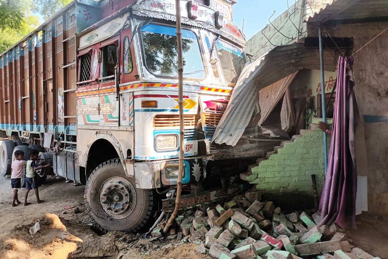 घर में घुसी ट्रक से बाल-बाल बचे सदस्य, दो बकरी की मौत