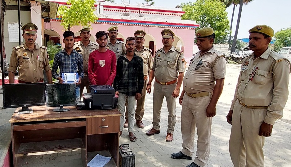 जौनपुर धारा, जौनपुर। मछलीशहर पुलिस ने पंचायत भवन परसूपुर व पंचायत भवन मथुरा से हुई चोरी का सफल अनावरण करते हुए चोरी का माल, अवैध तमन्चा व कारतूस के साथ तीन शातिर अभियुक्तों को गिरफ्तार करने में सफलता हासिल की है। पुलिस की पूछताछ में अभियुक्तों ने क्षेत्र में हुई कई चोरियों को अंजाम देना स्वीकार किया है। इस मामले में पुलिस आवश्यक कार्यवाही कर रही है। क्षेत्र में हो रही लगातार चोरियों से जहां एक तरफ लोग दहशत में हैं। वहीं दूसरी तरफ़ ये चोर पुलिस के लिए सरदर्द बने थे। रविवार की भोर में पुलिस को सूचना मिली कि चोरी की घटना में शामिल कुछ लोग परसूपूर मोड़ के पास मौजूद है। सूचना मिलते ही पुलिस ने घेराबंदी करते हुए वहां से 3 लोगों को गिरफ्तार कर लिया। जिनके कब्जे से चोरी की एक मानिटर एचपी सीसीटीवी मानिटर, एक सीपीयू इंटेल, एक प्रिन्टर, एक बैटरी तथा एक तमंचा, एक जिन्दा कारतूस की बरामदगी की गयी। आवश्यक कार्यवाही उपरान्त अभियुक्तों को न्यायालय के समक्ष प्रस्तुत किया जा रहा है। गिरफ्तार किए गए अभियुक्तों में सुमित कुमार पुत्र विजय बहादुर विश्वकर्मा निवासी रामनगर थाना मछलीशहर, शिव प्रकाश विश्वकर्मा उर्फ गोलू पुत्र भोलानाथ निवासी रामनगर थाना मछलीशहर, शुभम सरोज उर्फ मोनू पुत्र विजय बहादुर निवासी परसूपुर थाना मछलीशहर शामिल हैं। 05 मार्च 2023 की रात्रि तीन अज्ञात चोरो द्वारा पंचायत भवन मथुरा से उसमें लगे कम्प्यूटर, सीसीटीवी व मेज कुर्सी को चुरा ले गये थे। जिसके सम्बन्ध में ग्राम प्रधान नसीमा बेगम की प्रार्थना पत्र पर 07 मार्च 2023 को मु.अ.सं. 50/23 धारा 380 आईपीसी बनाम अज्ञात पंजीकृत किया गया। 18 मई 2023 की रात्रि अज्ञात चोरों द्वारा पंचायत भवन परसूपुर में दरवाजा तोड़कर एचपी स्लिम डेस्कटाप, एचपी पैनल मानीटर, एचपी इंकटैंक मल्टीफंशन कलर इंक जेट प्रिन्टर, सीपी प्लस कैमरा सेट विद 17 इंच मानीटर चुरा कर ले गये। जिसके सम्बन्ध में ग्राम प्रधान परसूपुर सोमारी देवी के पुत्र सुनील कुमार की तहरीरी सूचना पर 20 मई 2023 को 105/23 धारा 457/380 आईपीसी बनाम अज्ञात पंजीकृत किया गया। उक्त दोनो मुकदमों की विवेचना उ.नि.सैय्यद हसन जाफर रिजवी द्वारा प्रचलित है। गिरफ्तारी करने वाली टीम में प्र.नि. मछलीशहर किशोर कुमार चौबे मय हमराही कर्मचारीगण उ.नि.शसैय्यद हसन जाफर रिजवी, थाना मछलीशहर, उ.नि.रमेशचन्द्र चौबे थाना मछलीशहर, का.गोविन्द खरवार, थाना मछलीशहर, नीतिश कुमार, थाना मछलीशहर शामिल हैं।