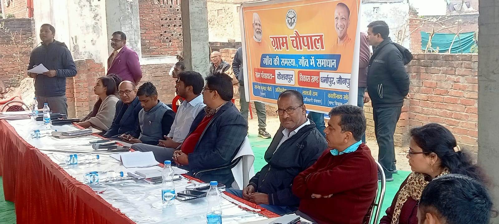 जौनपुर धारा, जौनपुर। धमार्पुर ब्लॉक क्षेत्र के केशवपुर ग्राम पंचायत में शुक्रवार को आयोजित ग्राम चौपाल में जिलाधिकारी के न पहुंचने पर डीडीओ और एसडीएम सदर ने पहुंचकर ग्रामीणों के साथ चौपाल लगाई तथा उनकी समस्याओं के बारे में जानकारी ली।