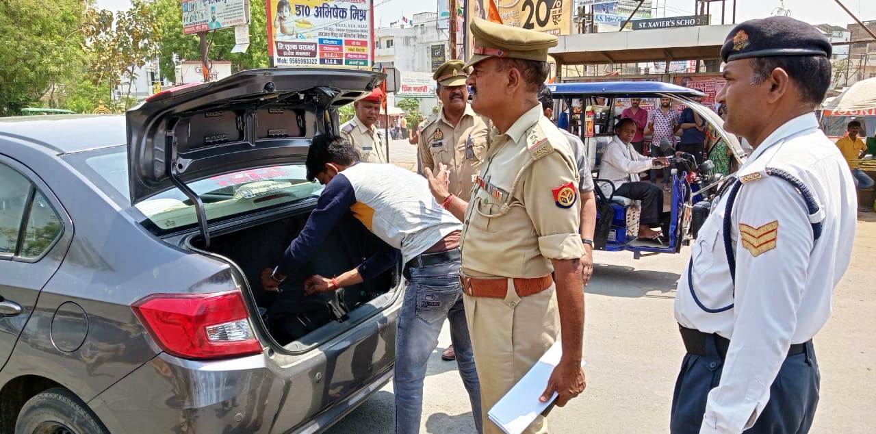 जौनपुर धारा, जौनपुर। रविवार को नगर के मुख्य चौराहों पर वाहनों की गहनता से चेकिंग की गयी। जेसीज, पॉलिटेक्निक सहित अन्य मार्गों पर पुलिस चप्पे-चप्पे पर तैनात रही। ट्रैफिक इंस्पेक्टर जीडी शुक्ला ने बताया की बीती रात प्रयागराज में अतीक व उसके भाई की हत्या के कारण पूरे प्रदेश में हाई अलर्ट है। वहीं दूसरी वजह नगर निकाय चुनाव को लेकर आने जाने वालों पर प्रशासन की निगाह बनी हुई है। किसी प्रकार की अराजकता से निबटने के लिए हम तैयार हैं। इस दौरान पुलिस ने चार पहिया वाहनों में लगी काली फिल्म को भी उतरवाया।