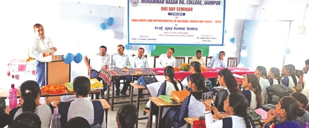 जौनपुर धारा,जौनपुर। मोहम्मद हसन पी.जी.कॉलेज के शिक्षाशास्त्र विभाग (बी.एड.) ने गुरूवार को राष्ट्रीय शिक्षा नीति 2020 चुनौतियाँ एवं संभावनाएँ विषय पर एक दिवसीय राष्ट्रीय सेमिनार का भव्य आयोजन किया गया। कार्यक्रम का शुभारम्भ मुख्य अतिथि एवं वक्ता प्रोफेसर अजय कुमार दुबे, संकायाध्यक्ष, (शिक्षक-शिक्षा) बी.एड संकाय, वीर बहादुर सिंह पूर्वांचल विश्वविद्यालय ने दीप प्रज्वलन एवं सरस्वती वंदना के साथ किया। महाविद्यालय के प्राचार्य डॉ.अब्दुल कादिर खान की अध्यक्षता में सम्पन्न इस संगोष्ठी में मुख्य वक्ता प्रो.दुबे ने अपने व्याख्यान में राष्ट्रीय शिक्षा नीति 2020 की विशेषताओं, महत्व, उद्देश्यों तथा इसके क्रियान्वयन में आने वाली प्रमुख चुनौतियों एवं समाधान पर विस्तारपूर्वक प्रकाश डाला। उन्होंने कहा कि यह नीति भारतीय शिक्षा जगत में एक ऐतिहासिक परिवर्तन की दिशा में सार्थक कदम है जो छात्रों की रचनात्मकता, आलोचनात्मक चिंतन, नवाचार एवं शोध क्षमता को बढ़ावा देगी। सेमिनार के दौरान उन्होंने विद्यालयी शिक्षा, उच्च शिक्षा, व्यावसायिक शिक्षा, शिक्षक प्रशिक्षण, तकनीकी शिक्षा सहित नीति के सभी प्रमुख बिंदुओं पर अपनी बात रखी। प्राचार्य डॉ.अब्दुल कादिर खान ने अपने अध्यक्षीय उद्बोधन में कहा कि नई शिक्षा नीति का उद्देश्य भारत को ज्ञान आधारित वैश्विक महाशक्ति बनाना है। यह नीति शिक्षा की गुणवत्ता, समावेशिता एवं पहुँच को सुदृढ़ बनाने हेतु अनेक नए अवसर प्रदान करती है। डॉ.अब्दुल कादिर खान ने महाविद्यालय में शिक्षण की गुणवत्ता सुधारने हेतु शिक्षकों एवं विद्यार्थियों को सदैव तत्पर एवं जागरूक रहने का आह्वान भी किया। संचालन सौलत फरीदी ने किया। धन्यवाद ज्ञापन विभागाध्यक्ष डॉ सुनील दत्त मिश्रा द्वारा प्रस्तुत किया गया। कार्यक्रम में डॉ.जीवन यादव, डॉ.प्रज्वलित यादव, डॉ.गुलाबचंद मौर्य, डॉ.आशीष कुमार श्रीवास्तव, डॉ.संतोष कुमार यादव इत्यादि, छात्र एवं छात्राएँ उपस्थित रहे। सेमिनार में बी.एड. विभाग के सभी प्रशिक्षुओं, शोधार्थियों, प्राध्यापकों एवं कर्मचारियों की सक्रिय उपस्थिति रही। कार्यक्रम अत्यन्त सफल एवं ज्ञानवर्धक रहा।