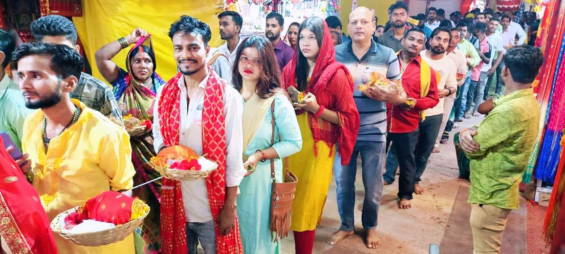 जयकारे से गूंज उठा पण्डाल, दर्शनार्थियों की लगी रही कतार