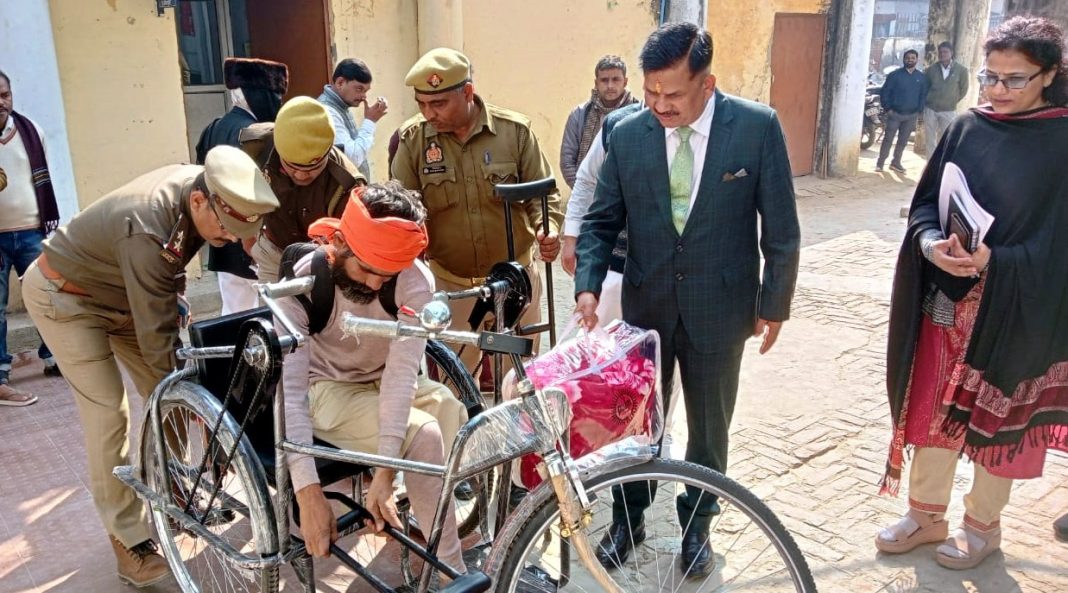 जिलाधिकारी के हाथों ट्राई साईकल पाकर खुश हुए दिव्यांग