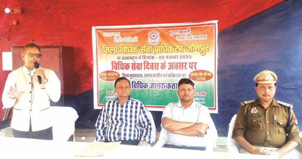 जौनपुर। उ.प्र.राज्य विधिक सेवा प्राधिकरण लखनऊ के निर्देशानुसार एवं जनपद न्यायाधीश/अध्यक्ष जिला विधिक सेवा प्राधिकरण सुशील कुमार शशि के निर्देशन व अपर जिला एवं सत्र न्यायाधीश तृतीय/सचिव जिला विधिक सेवा प्राधिकरण प्रशांत कुमार सिंह की देख-रेख में ‘विधिक सेवा दिवसÓ के अवसर पर आज 09 नवम्बर को जिला कारागार में विधिक साक्षरता/जागरूकता शिविर का आयोजन कर विधिक सेवा दिवस को उत्सव के रूप में मनाया गया। सचिव द्वारा उपस्थित लोगों को विधिक सेवा दिवस के बारे में विस्तार पूर्वक जानकारी प्रदान करायी गयी और साथ ही राष्ट्रीय/राज्य विधिक सेवा प्राधिकरण की समस्त योजनाओं के बारे में बताया। कार्यक्रम का संचालन डॉ.दिलीप कुमार सिंह, डिप्टी चीफ लीगल एड डिफेंस काउंसिल द्वारा लीगल एड डिफेंस काउंसिल द्वारा प्राप्त नि:शुल्क विधिक सहायता के बारे में बताया। इस अवसर सुबाष पाण्डेय जेलर, श्रीमती सुषमा शुक्ला, नन्दकिशोर डिप्टी जेलर, डॉ.विनय कुमार राव चिकित्साधिकारी व कारागार के अन्य अधिकारी, कर्मचारीगण, सुनील कुमार मौर्य, डाटा इन्ट्री आपरेटर, पीएलवी शिवशंकर सिंह, सुबाष चन्द्र यादव, सुनील कुमार व जेल के पीएलवी दिलीप कुमार सिंह, राहिल व अन्य बन्दीगण उपस्थित रहें।