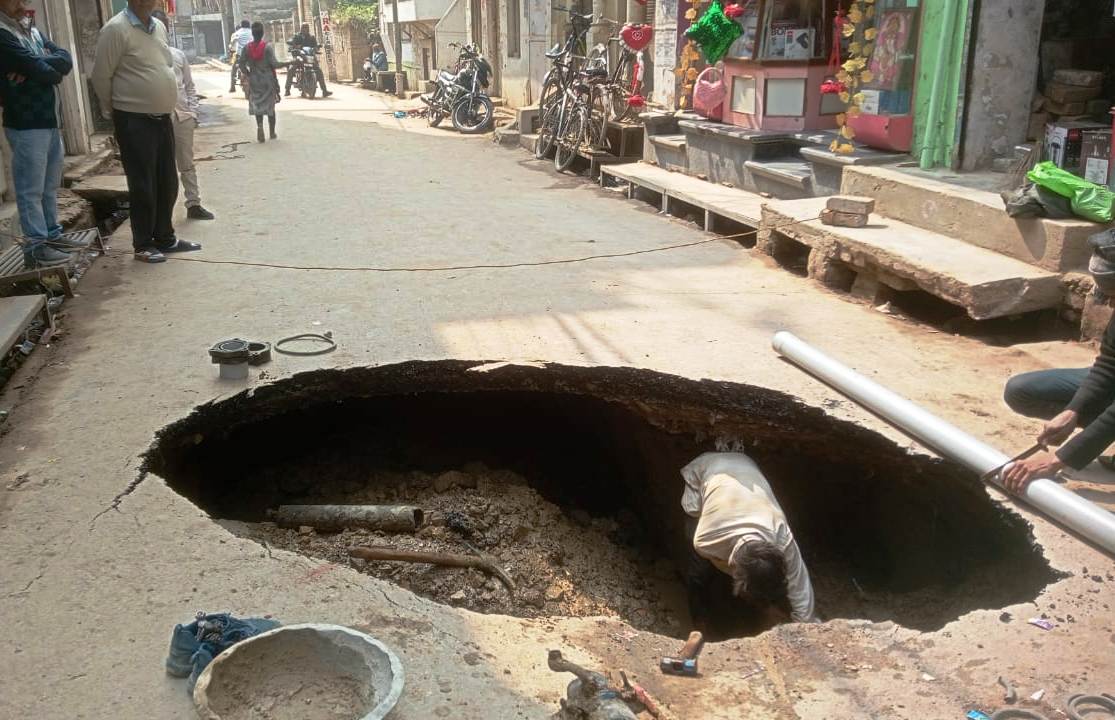 अचानक हुए गड्ढे से घबरायें स्थानीय लोग