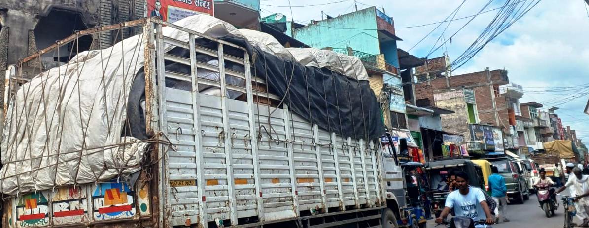 ट्रक खराब होने पर बाजार में आधा घण्टा लगा जाम
