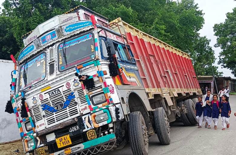 ट्रक सड़क में धंसी, बड़ी घटना टली