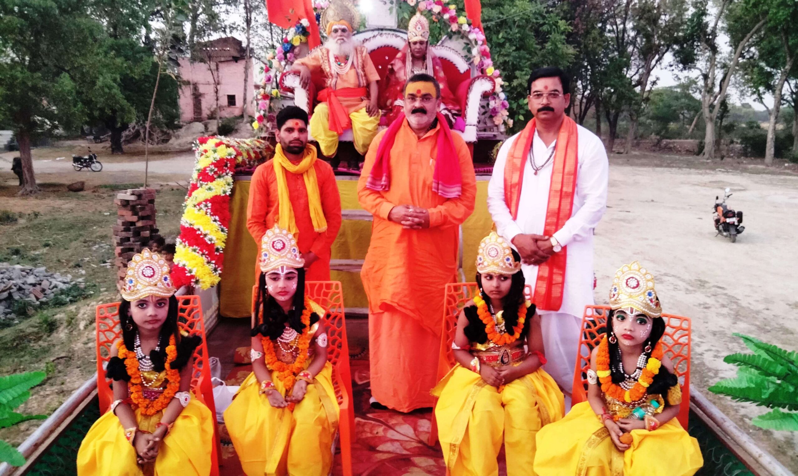 जौनपुर धारा,मुंगराबादशाहपुर। विश्व हिंदू परिषद एवं बजरंग दल की ओर से संयुक्त रूप से रामनवमी पर बुधवार की शाम को हाथी घोड़े व बैंड बाजे के साथ भगवान श्री राम दरबार की शोभायात्रा नगर भ्रमण के लिए निकाली गई। शोभा यात्रा नई बाजार बहोरीकपुर में स्थित दक्षिण मुखी हनुमान मंदिर से निकाल कर नगर के मुख्य मार्ग से होते हुए स्टेशन रोड शिव मंदिर जाकर समाप्त हो गई। राज्य सभा सांसद सीमा द्विवेदी, चेयरमैन कपिल मुनि, विशम्भर दुबे, आलोक कुमार गुप्ता पिन्टू, मनोज महाराज, कृष्ण गोपाल जायसवाल व जगदंबा जायसवाल ने भगवान श्रीराम दरबार की आरती पूजन कर शोभा यात्रा को रवाना किया। इस दौरान शोभायात्रा में शामिल भगवान श्रीराम के रूप में हनुमान शाश्वत मौर्य, लक्ष्मण ओम, भरत शाश्वत, शत्रुघ्न त्रिशू व दशरथ धीरेंद्र सभी के आकर्षण का केंद्र बना रहा। शोभा यात्रा जिधर से गुजरी उसे देखने के लिए लोगों का हुजूम उमर पड़ा। महिलाएं अपने घरों के छतों के ऊपर से शोभा यात्रा पर पुष्प वर्षा कर आशीर्वाद लिया। भगवान श्री राम के उद्घोष से समूचा नगर राममय में गुंजमान हो उठा। श्रद्धालु रथ के आगे पीतांबर वस्त्र धारण कर संकीर्तन करते हुए नाचते गाते चल रहे थे। जगह-जगह श्रद्धालुओं के लिए जलपान की व्यवस्था की गई थी। शोभायात्रा में श्रद्धालुओं ने स्लोगन से लिखा हाथों में शक्ति लेकर सभी लोगों को मतदान के प्रति जागरूक किया। इस अवसर पर चेयरमैन कपिल मुनि गुप्त, अर्चना शुक्ला, प्रबंधक आलोक कुमार गुप्ता पिंटू, पूर्व चेयरमैन शिव गोविंद साहू, सौरभ पांडे, राजीव गुप्ता राजू, सौरभ जायसवाल, जगदम्बा जायसवाल, अमित दुबे घनश्याम केसरी, उमाशंकर, अध्यक्ष वर्दी ग्रुप सुशील पाण्डेय, राजीव केसरी, सभासद रंजना दुबे, गणेश सभासद, डॉ.शेखानंद पांडे, दीपक शर्मा, राजेश माली, कमलेश मिश्रा आदि लोग मौजूद रहे।
