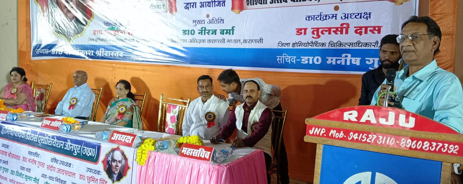 जौनपुर धारा, जौनपुर। होमियोपैथिक डीलर्स एसोसिएशन के तत्वाधान में बीते दिन होमियोपैथिक के जनक डॉ. सैमुअल हैनिमैन की 268वी जयंती को एक निजी होटल में भव्य रूप से मनाया गया। कार्यक्रम का उद्घाटन वाराणसी मण्डल के मुख्य चिकित्सा अधीक्षक डॉ. नीरज वर्मा ने दीप प्रज्ज्वलित कर किया। साथ ही इस कार्यक्रम में होमियोपैथिक की तमाम कंपनियों ने स्टाल लगाकर अनेक प्रकार की नई-नई दवाइयों की जानकारियां लोगों को दी। कार्यक्रम में विशिष्ट अतिथि के रूप में अंजू पाठक व डीएचओ सुल्तानपुर डा. फरहाना सगीर रहीं। कार्यक्रम की अध्यक्षता डीएचओ डा. तुलसी दास ने की। कार्यक्रम के दौरान मौके पर होमियोपैथिक डीलर्स एसोसिएशन के अध्यक्ष डा. रविप्रकाश श्रीवास्तव, महासचिव डा. मनीष कुमार गुप्ता, समिति के वरिष्ठ उपाध्यक्ष संदीप जायसवाल, उपाध्यक्ष डा. सुमित सिंह, अंजनी कुमार, धीरज मिश्रा, अखिलेश पाण्डेय, विवेक, विनोद प्रकाश, डा. शशिप्रकाश श्रीवास्तव, मनाेज विश्वकर्मा, उमंग श्रीवास्तव, राजेश श्रीवास्तव सहित तमाम लोग मौके पर मौजूद रहे।