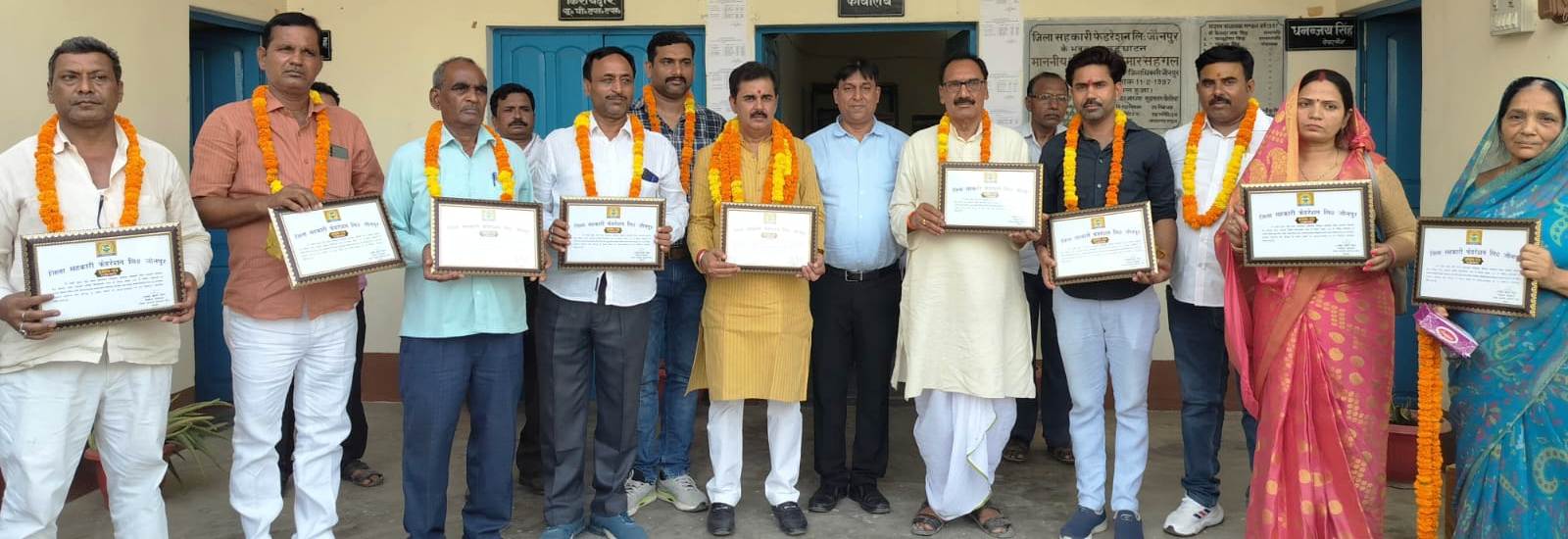 जौनपुर धारा, जौनपुर। जिला सहकारी फेडरेशन (डीसीएफ) के अध्यक्ष पद का मंगलवार को चुनाव हुआ। इसमें भारतीय जनता पार्टी के धनन्जय सिंह निर्विरोध अध्यक्ष बने जो वरसठी विधानसभा से पूर्व विधायक रघुराज प्रताप सिंह के सुपुत्र है। उपाध्यक्ष पद पर ब्रह्मदेव तिवारी एवं अन्य 11 डायरेक्टर भी निर्विरोध चुने गए और एक नामित सदस्य शैलेन्द्र पाण्डेय चुने गये। नतीजों की घोषणा होते ही भाजपाई जश्न में डूब गए। बता दे की जिला सहकारी फेडरेशन के चुनाव को लेकर कई दिन से गहमागहमी चल रही थी। सत्ताधारी दल भाजपा ने धनन्जय सिंह को अध्यक्ष पद का उम्मीदवार घोषित किया था। प्रत्याशी सार्वजनिक होने के बाद से ही माना जा रहा था कि विपक्षी पर्चा नहीं दाखिल करेंगे। मंगलवार को हुआ भी ठीक वैसा ही। पालीटेक्निक चौराहा स्थित डीसीएफ कार्यालय में हुए नामांकन में अकेले भाजपा प्रत्याशी धनञ्जय सिंह ने ही पर्चा दाखिल किया। शाम चार बजे निर्वाचन अधिकारी ने परिणाम की घोषणा कर दी। डीसीएफ कार्यालय पर भाजपा कार्यकर्ताओं ने उनका माल्यार्पण कर एवं पुष्प गुच्छ देकर स्वागत किया और एक-दूसरे को मिठाई खिलाकर जश्न मनाया। जिलाध्यक्ष पुष्पराज सिंह ने कहा कि यह निर्विरोध निर्वाचन भाजपा के नीतियों और सरकार के जनहित के कार्यों की जीत है। डबल इंजन कि सरकार जैसे विकास का कार्य कर रही है उम्मीद करता हूँ कि नव निर्वाचित अध्यक्ष भी किसानों के हित में जो भी विकास कार्य होगा वो जरूर करेंगे। इस दौरान धनन्जय सिंह ने कहा कि जिस तरह से फेडरेशन के सदस्यों ने मुझपर भरोसा जताया है। उसी तरह मैं भी उनके विश्वास पर खरा उतरते हुए किसानों के हित में कार्य करने के लिए संकल्पित हूँ। सरकार द्वारा किसानों के हित में संचालित योजनाओं को उन तक पहुंचाने के लिए सतत प्रयत्नशील रहूगां। स्वागत करने वालों में जिला महामंत्री सुशील मिश्रा, पीयूष गुप्ता, जिला मीडिया प्रभारी आमोद सिंह, रोहन सिंह, रणन्जय सिंह, बेचन सिंह, नव निर्वाचित डायरेक्टरगण शैलेश सिंह, विनोद तिवारी, अशोक कुमार, रामचन्दर, नगीना, कुसुमलता सिंह, रणजीत सिंह, पूजा मिश्रा, दिलीप कुमार शर्मा, रीता देवी, संजय सिंह ने किया।