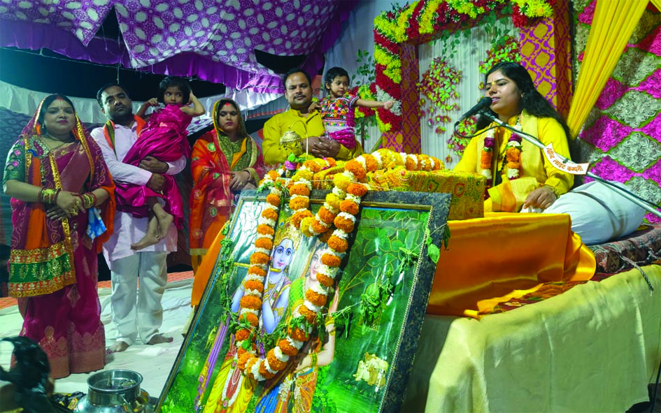 मुंगराबादशाहपुर। साहबगंज स्थित शक्तिपीठ मां काली मंदिर परिसर में आयोजित श्रीमद्भागवत कथा के पांचवें दिन श्रीकृष्ण जन्मोत्सव का मनोहारी प्रसंग सुनते ही पूरा पंडाल भक्तिमय हो उठा। कथा वाचिका सुश्री प्रज्ञा जी (वृंदावन) ने जैसे ही भगवान श्रीकृष्ण के जन्म का वर्णन किया, श्रद्धालु ‘नंद के घर आनंद भयो, जय कन्हैया लाल कीÓ भजनों पर झूम उठे। कथा के दौरान सुश्री प्रज्ञा जी ने कहा कि जब-जब धरती पर अधर्म और अत्याचार बढ़ता है, तब भगवान स्वयं अवतार लेकर धर्म की स्थापना करते हैं। उन्होंने कंस के अत्याचारों, पृथ्वी की प्रार्थना और भगवान के अवतार की प्रेरक कथा सुनाते हुए नरसिंह, वामन, परशुराम, श्रीराम और श्रीकृष्ण अवतार का विस्तार से उल्लेख किया। उन्होंने कहा कि भगवान श्रीकृष्ण का अवतार पूर्णावतार माना जाता है, जिसने संसार को नीति, प्रेम और भक्ति का संदेश दिया। कृष्ण जन्मोत्सव के अवसर पर ‘पाजी नाम हदीरा ऐसे हीरा रतनवां दे द, राजा जी खजनवा दे द…Ó जैसे भजनों की प्रस्तुति पर श्रद्धालु भावविभोर होकर नृत्य करने लगे। कथा के दौरान जैसे ही बाबा वासुदेव टोकरी में बाल गोपाल को लेकर पंडाल में पहुंचे, वातावरण जयकारों से गूंज उठा। इस मौके पर लक्ष्मी, प्रिया ऊमरवैश्य, पुष्पा, जानवी, पूजा जायसवाल, अर्चना सिंह, सावित्री, गुड़िया और नगीना समेत महिलाओं ने ‘जुग-जुग जियसु ललनवा, भवनवा के भाग जागल हो… ‘, ‘आज नंद के घर जन्मे कृष्ण कन्हैया… ‘, ‘नंद के आनंद भयो…Ó जैसे सोहर गीत प्रस्तुत कर श्रद्धालुओं को मंत्रमुग्ध कर दिया। कार्यक्रम की शुरुआत में सर्ववैश्य समाज के अध्यक्ष राजकुमार ऊमरवैश्य, श्यामलाल, पंकज केसरी, राहुल सोनी, सुनील केसरी और भोलाकसौधन ने भगवान श्रीकृष्ण के बाल स्वरूप की आरती उतारकर आशीर्वाद प्राप्त किया। इस अवसर पर मनोज ऊमरवैश्य, उमाकांत केसरी, मनोज जायसवाल, पवन ऊमरवैश्य, गुड्डू सिंह, भारत लाल, सौरभ जायसवाल सहित बड़ी संख्या में श्रद्धालु उपस्थित रहे।