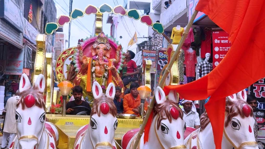 - सुबह से विभिन्न पूजा समितियों ने नगर में निकाला शोभायात्रा