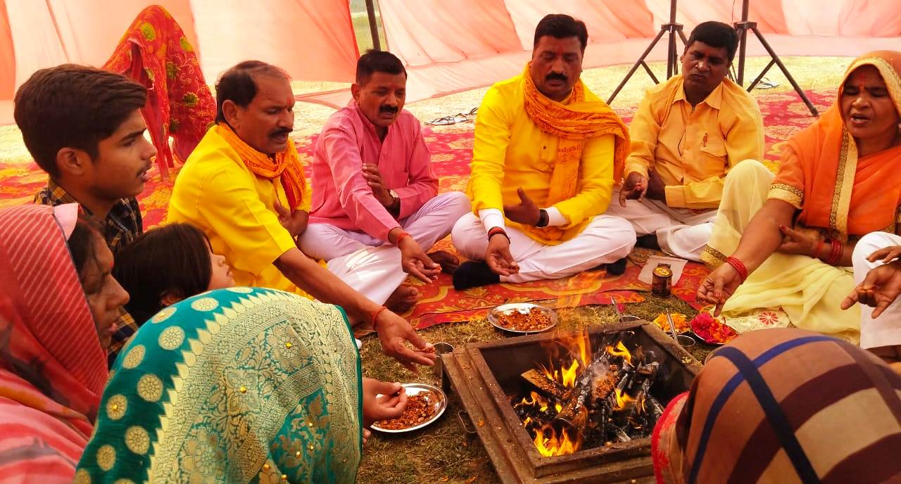 नव कुण्डीय गायत्री महायज्ञ में श्रद्धालुओं ने किया हवन यज्ञ