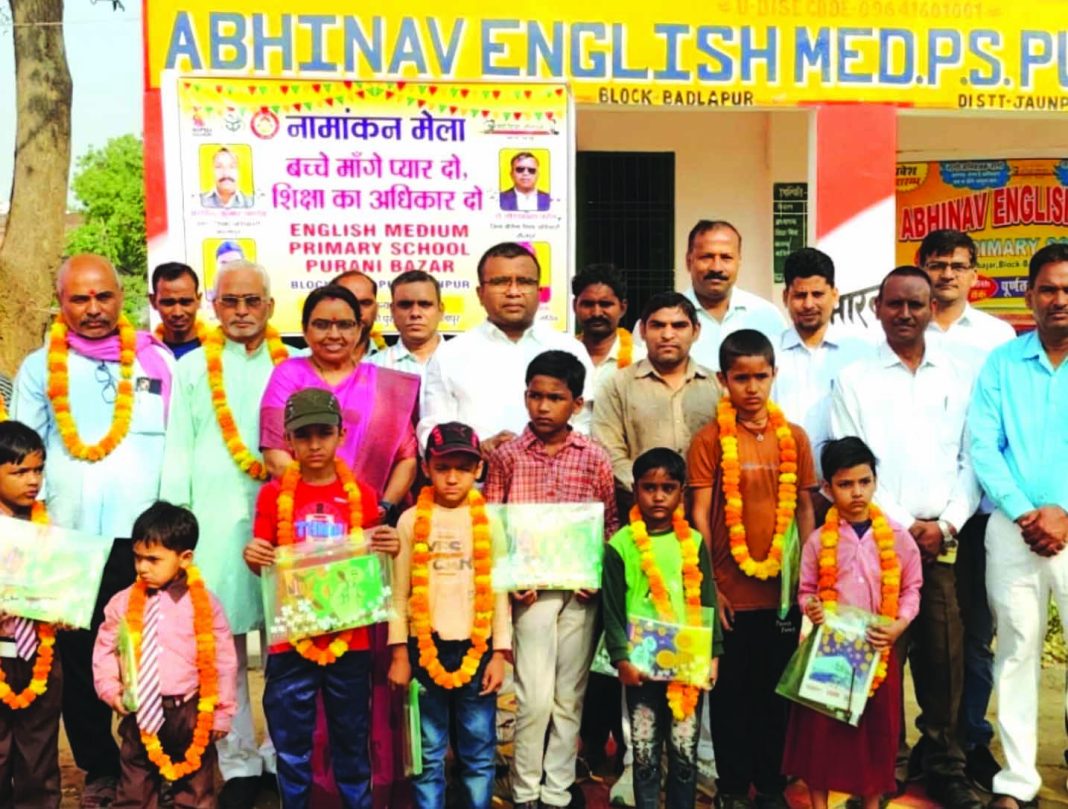 जौनपुर धारा,बदलापुर। विकास खण्ड के अभिनव अंग्रेजी माध्यम प्राथमिक विद्यालय, पुरानी बाजार में शुक्रवार को नामांकन मेले का आयोजन किया गया। मुख्य अतिथि के रूप में पहुंचे जिला बेसिक शिक्षा अधिकारी डॉ.गोरखनाथ पटेल ने नव प्रवेशी बच्चों को माला पहनाकर, कांपी, कलम और टॉफी भेंट कर उनका नामांकन किया। इस दौरान 32 बच्चों का नामांकन संपन्न हुआ। कार्यक्रम की अध्यक्षता खण्ड शिक्षा अधिकारी अरविंद कुमार पांडे ने की, जबकि राज्यपाल पुरस्कार प्राप्त प्रधानाध्यापिका डॉ.विभा शुक्ला ने अतिथियों का स्वागत किया। बीएसए ने शिक्षा के महत्व पर प्रकाश डालते हुए अभिभावकों को बच्चों की शिक्षा को लेकर जागरूक किया। इस अवसर पर बच्चों द्वारा सांस्कृतिक कार्यक्रम प्रस्तुत किए गए। बीएसए ने अन्य नव प्रवेशी बच्चों का भी नामांकन कर पाठ्य सामग्री वितरित की और शिक्षकों को प्रमाण पत्र देकर सम्मानित किया। कार्यक्रम में पूर्व एआरपी राजभारत मिश्रा, डॉ.ओमप्रकाश गुप्ता, कैलाश रजक, राकेश पाल, उमेश चंद्र दुबे, प्रधानाध्यापिका ममता सिंह सहित कई शिक्षक व अभिभावक मौजूद रहें।