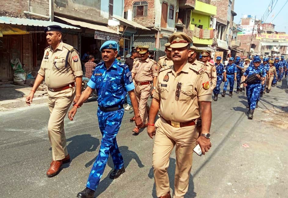 जौनपुर धारा, शाहगंज। नगर निकाय चुनाव के मद्देनजर पुलिस उपाधीक्षक चोब सिंह प्रभारी निरीक्षक सदानंद राय के नेतृत्व में पैरामिलिट्री फोर्स ने नगर भ्रमण कर परिचयात्मक अभ्यास कर नगर भ्रमण किया। फ्लैग मार्च में रैपिड एक्शन फोर्स कमांडेंट आर.पी.यादव के साथ हथियारों से लैस महिला एवं पुरुष जवान मौजूद रहे। कोतवाली परिसर से निकल कर रामलीला भवन चौक, एराकियाना, बालिका इंटर कालेज, पुराना चौक, चूड़ी मोहल्ला, घासमंडी, डाकखाना तिराहा, श्रीरामपुर, कलेक्टरगंज, सब्जी मंडी होते हुए पुन: उद्गम स्थल कोतवाली परिसर में पहुंच कर समाप्त हुआ। इस दौरान संदेश दिया गया कि नगर निकाय चुनाव निस्पक्ष पारदर्शिता एवं शांतिपूर्ण ढंग से सम्पन्न होगा। किसी को भी भयभीत होने की आवश्यकता नहीं है।