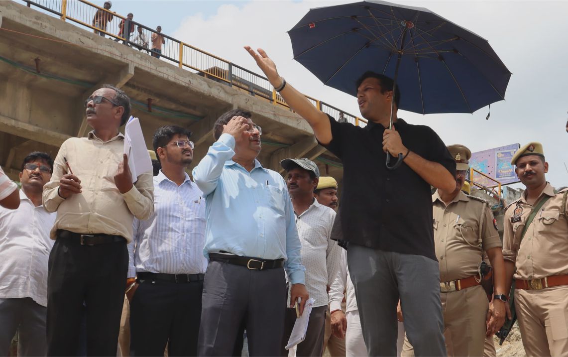 निर्माणाधीन पुल के निर्माण का डीएम ने किया निरीक्षण