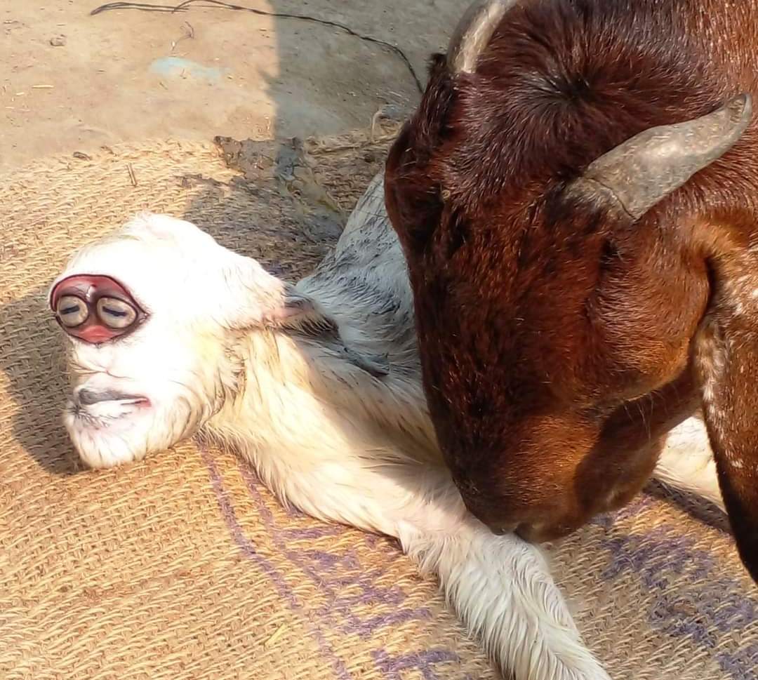 नुआंव में बकरी ने दिया अजीब मेमने को जन्म,उमड़ी भीड़