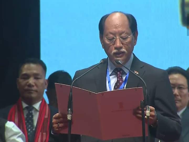 Neiphiu Rio Swearing In Ceremony: नगालैंड की राजनीति के दिग्गज नेफ्यू रियो ने मंगलवार को राज्य के मुख्यमंत्री के तौर पर शपथ ली. राजधानी कोहिमा में आयोजित समारोह में राज्यपाल ला गणेशन ने उन्हें शपथ दिलाई.  ये पांचवीं बार है जब नेफ्यू रियो नगालैंड के सीएम बने हैं. शपथ ग्रहण समारोह में पीएम नरेंद्र मोदी, गृह मंत्री अमित शाह, बीजेपी के राष्ट्रीय अध्यक्ष जेपी नड्डा और असम सीएम हिमंत बिस्व सरमा समेत बीजेपी के दिग्गज नेता मौजूद रहे.