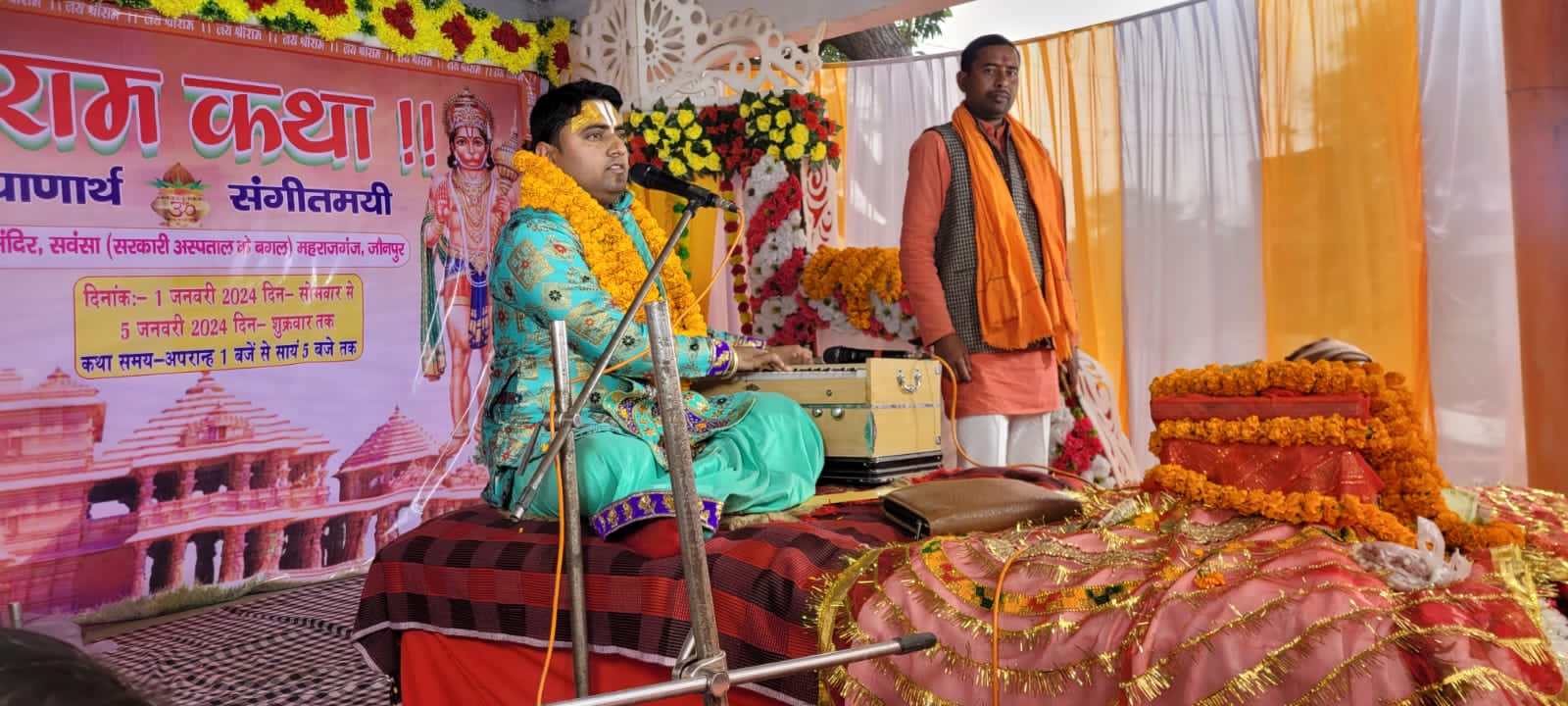 जौनपुर धारा, जौनपुर। महराजगंज क्षेत्र के सवंसा हनुमान मंदिर के प्रांगण में चल रही है। पंचदिवसीय लोक कल्याणर्थ संगीतमय श्रीराम कथा का शुक्रवार के दिन विश्राम हुआ। कड़ाके की ठंड में भी हनुमान मंदिर का पूरा प्रांगण कथा प्रेमियों से खचाखच भरा था। कथा व्यास नीरजानंद शास्त्री एवं शिवम जी महराज द्वारा अमृतमय श्रीराम कथा का रसपान कराया गया तथा अंत में आरती और प्रसाद का वितरण किया गया। इस मौके पर निवेदक भाजपा मण्डल अध्यक्ष यादवेंद्र प्रताप सिंह द्वारा सभी अतिथियों का स्वागत एवं सम्मान किया गया। हनुमान मंदिर पुजारी श्याम शंकर उपाध्याय द्वारा कल होने वाले भंडारे में महाप्रसाद ग्रहण करने कि लोगों से अपील की गई।